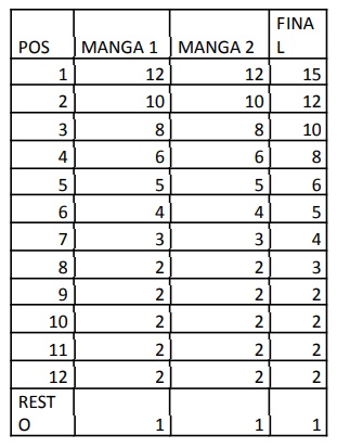 2° MANGA: La grilla de largada es establecida por el orden de puntaje en contra de la 1° manga.