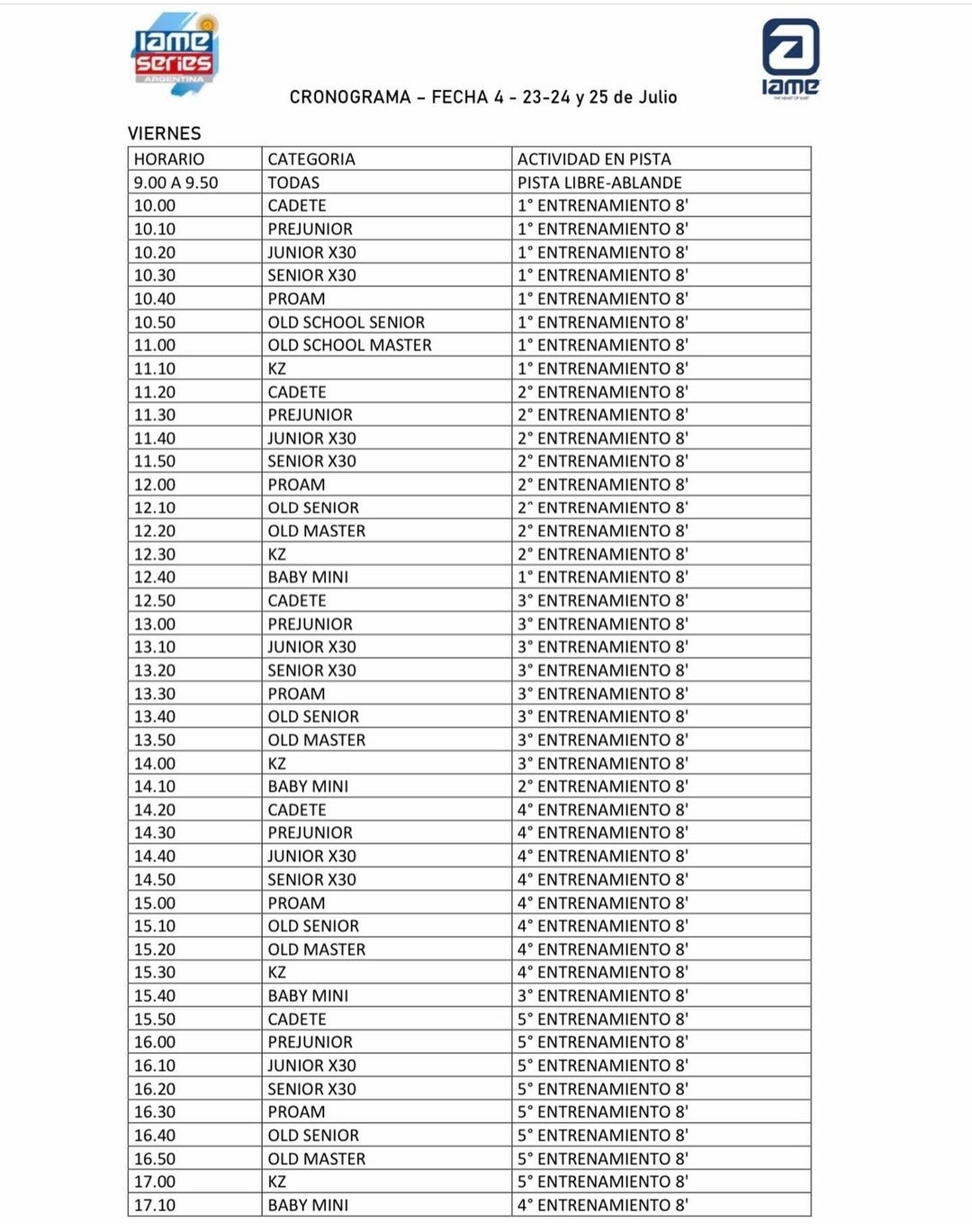 Horarios y datos para la 4° fecha del Champion Cup de IAME