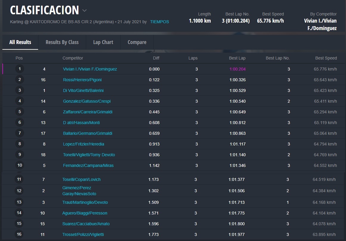 Segundos llegó el trinomio Zaffaroni Kart (Gustavo Carreira, Lucas Zaffaroni y Franceso Grimaldi), mientras que completó el podio y se llevó el récord de vuelta el team Toyota Gazoo Racing Kart (Matías Rossi, Herrero y Pigoni).