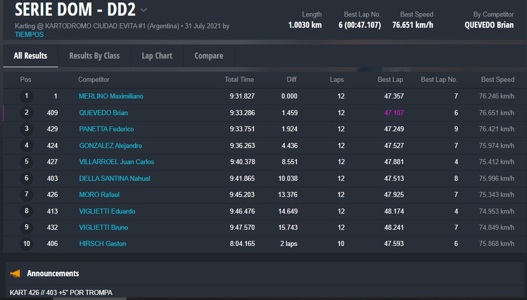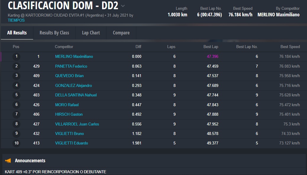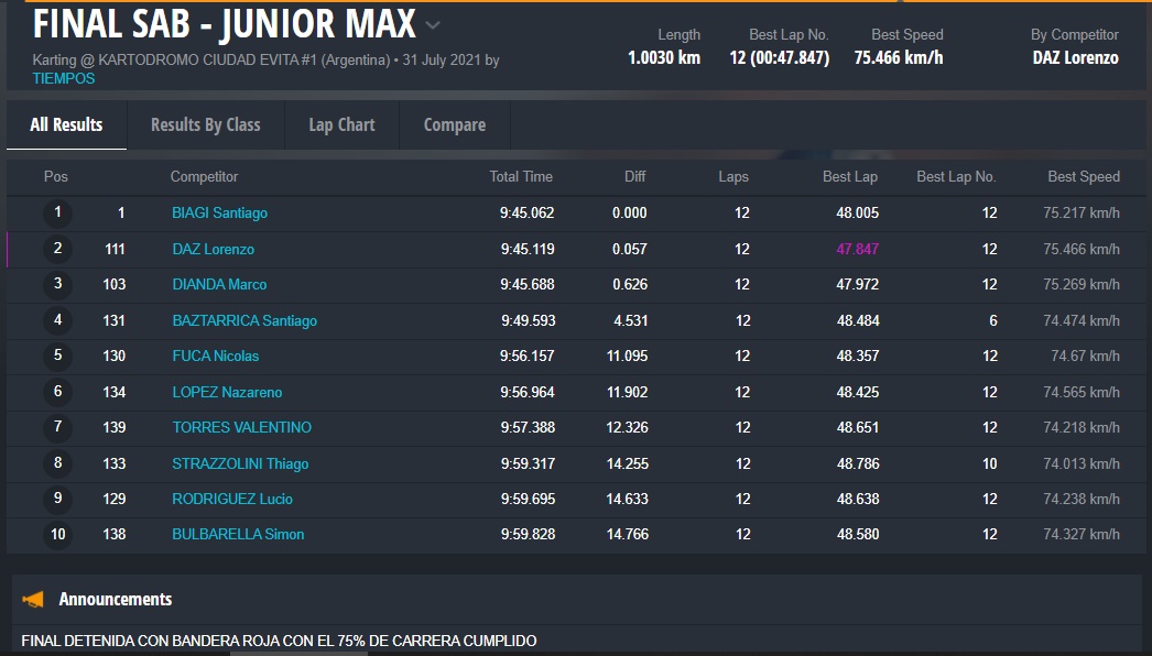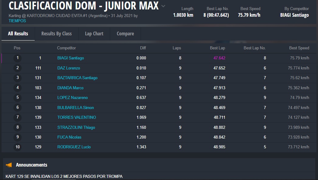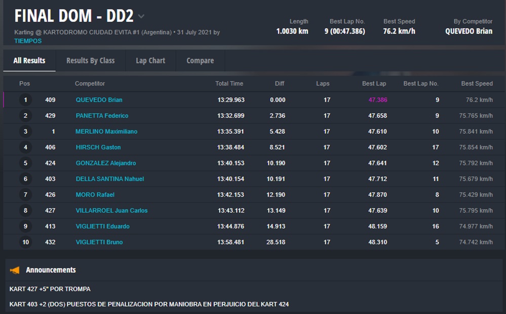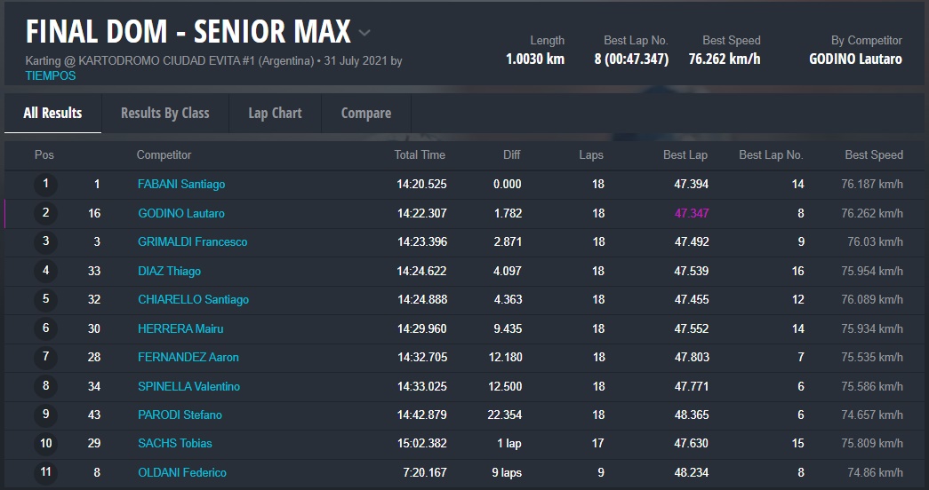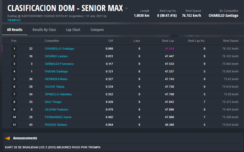 El día DOMINGO ganaron Fausto Arnaudo (Micro), Santino Dore (Mini), Santiago Biagi (Junior), Santiago Fabani (Senior), Gastón Amboade (Master) y Braian Quevedo (DD2). Ignacio Méndez Liñan (Senior Nacional) y Diego Vigliercio (Master Nacional) ganaron las dos finales que disputaron cada uno.