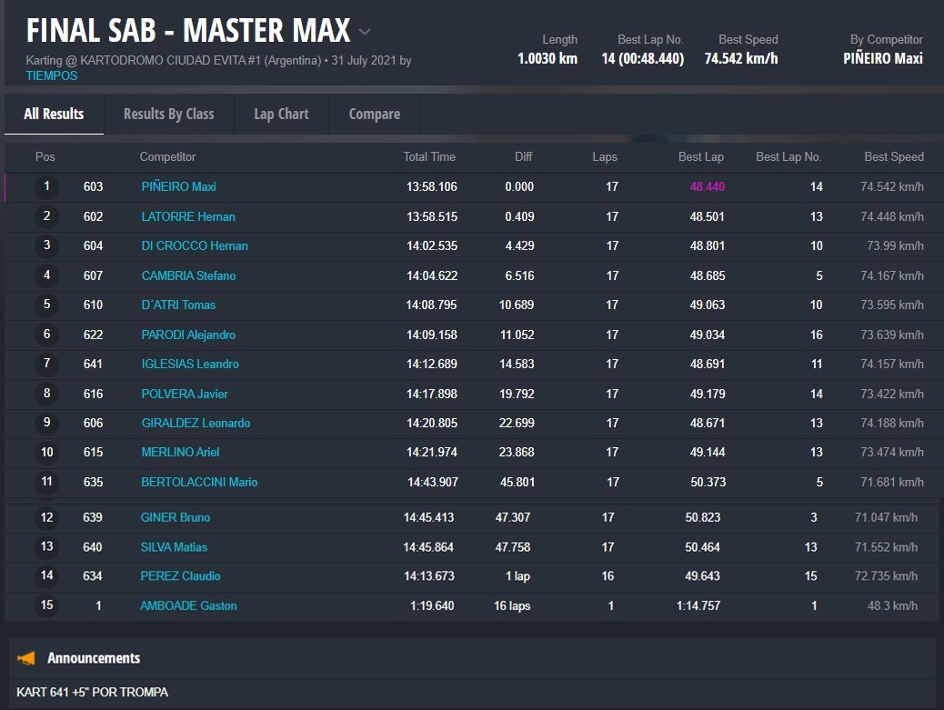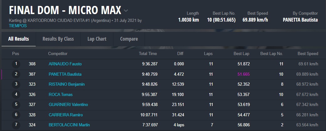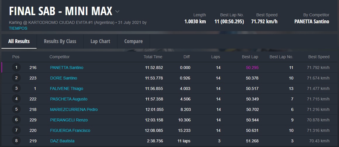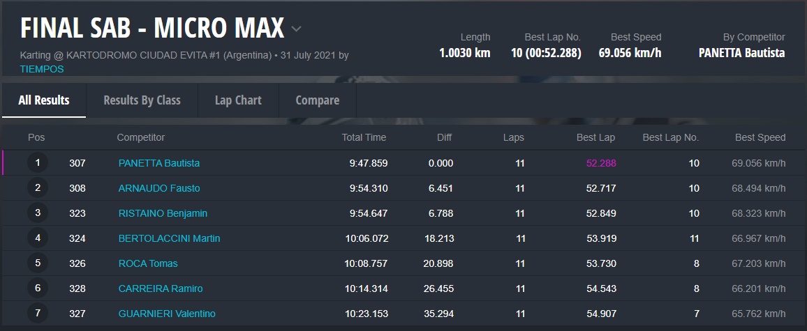 Las finales del SÁBADO quedaron para Bautista Panetta (Micro), Santino Panetta (Mini), Santiago Biagi (Junior), Santiago Chiarello (Senior), Maxi Piñeiro (Master) y Maxi Merlino (DD2).