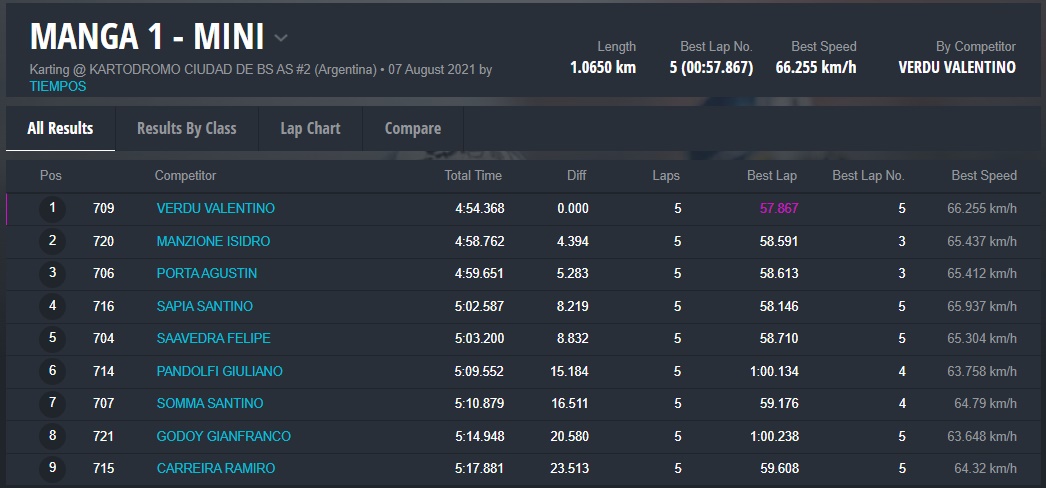 En la vuelta de honor, el flamante campeón fue saludado por su padre e integrantes del equipo, que le colocaron el “1” en la nariz de su kart, que bien merecido lo consiguió. El subcampeón fue Santino Sapia, que en este torneo obtuvo 2 victorias.