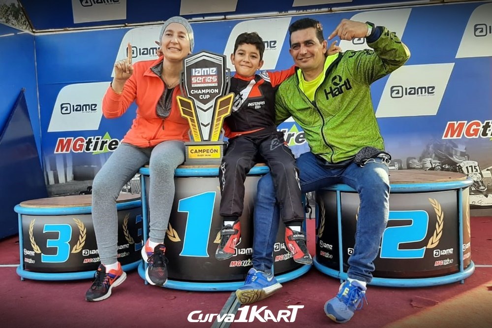 VALENTINO VERDÚ se coronó campeón de la clase Baby Mini, luego de ganar en forma íntegra la fecha 5 del torneo Champion Cup de IAME Series Argentina. Gran alegría de su familia, su familia y de Leandro Agüero, director del equipo Al Kart.