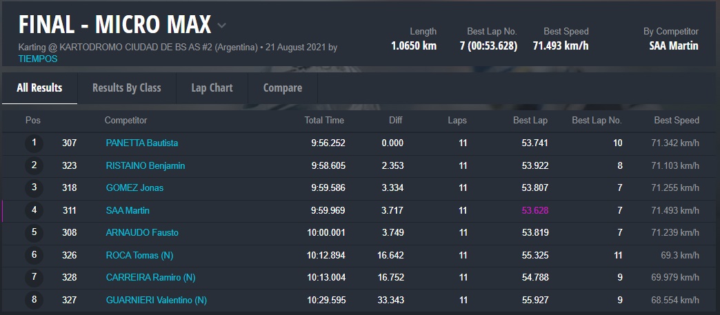 BAUSTISTA PANETTA ganó en Micro Max y estira su ventaja en el certamen. Benjamín Ristaino y Jonás Gómez completaron el podio.
