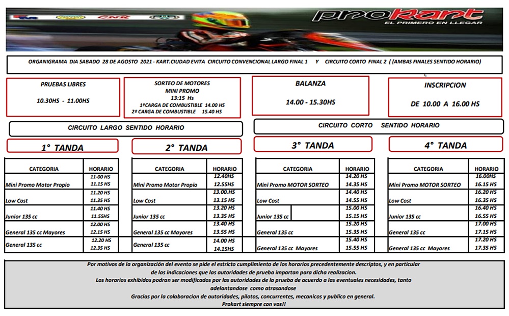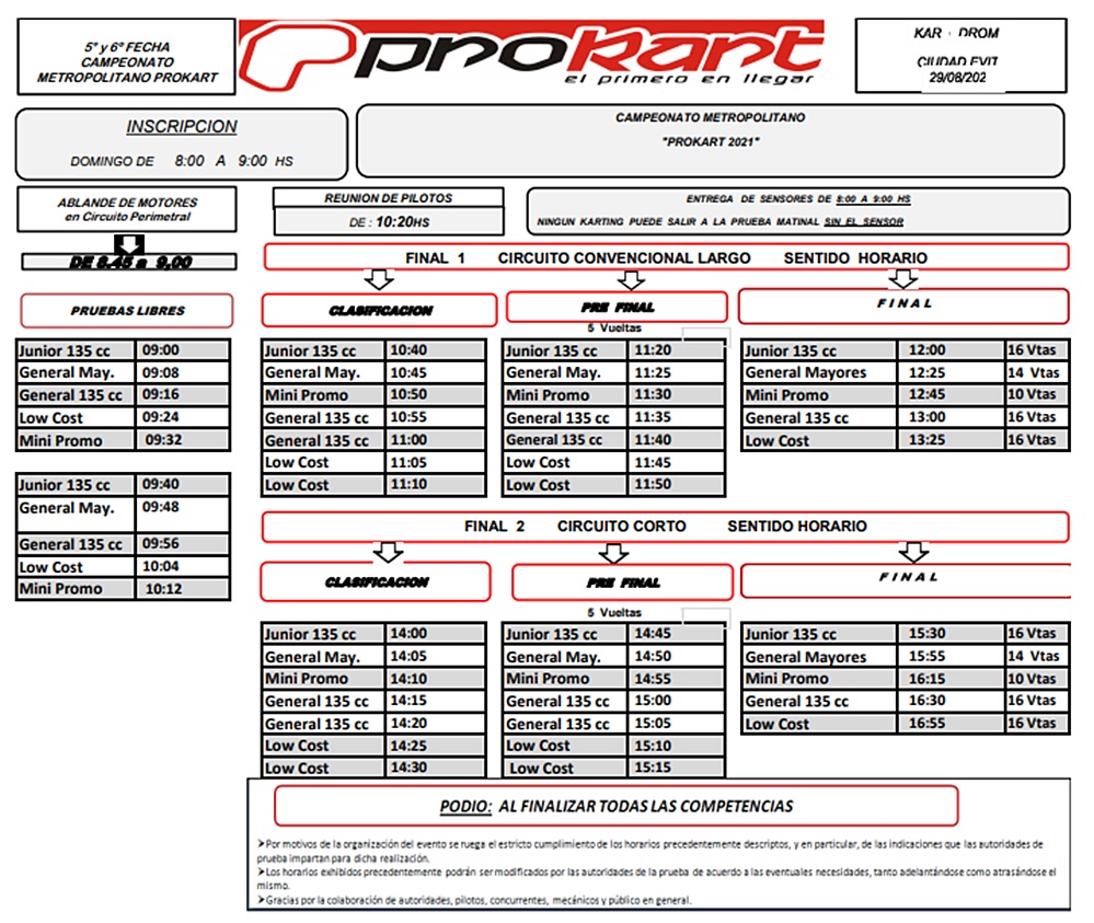 Horarios para la “fecha doble” de Prokart en Ciudad Evita
