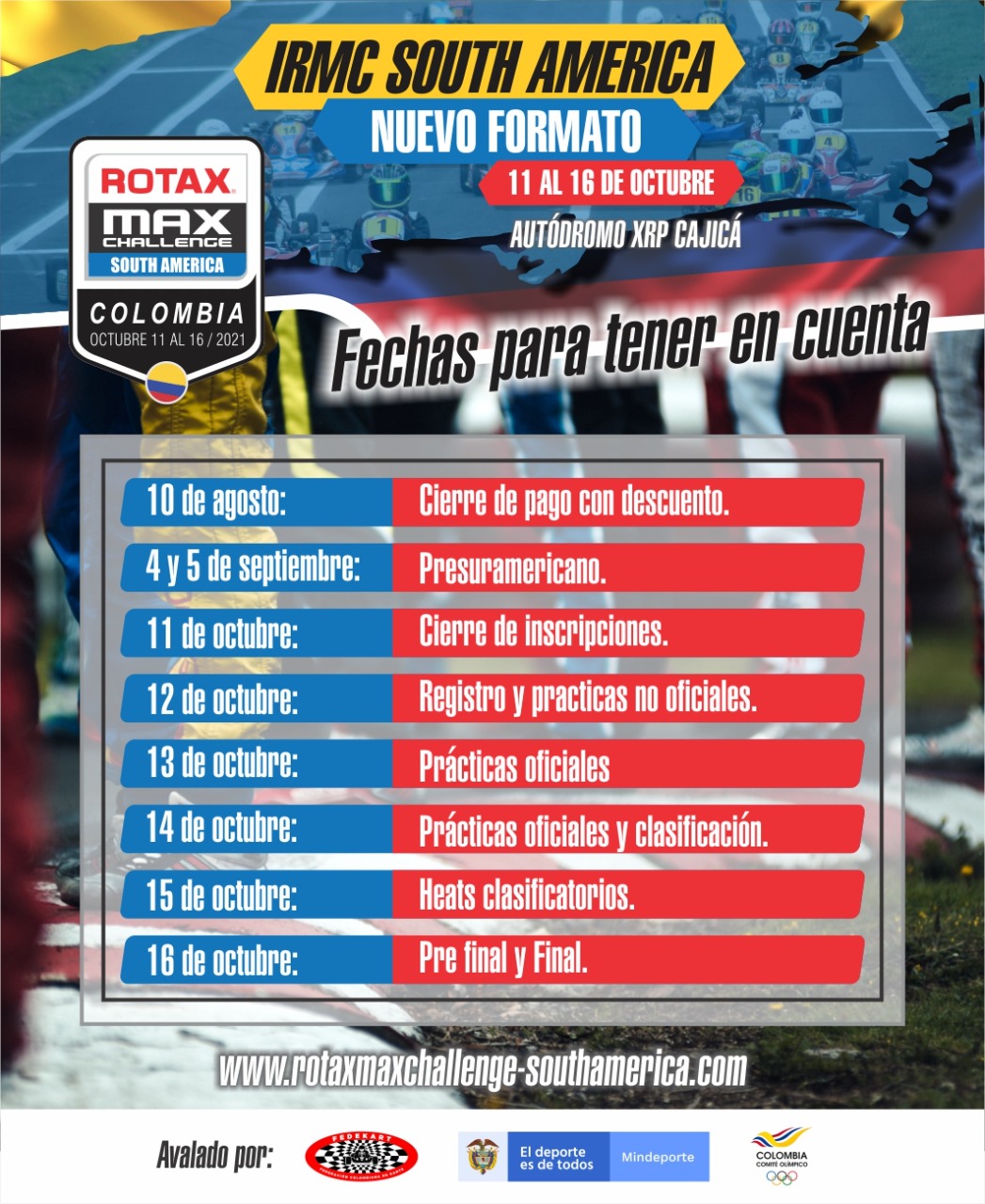Cada vez falta menos para la 11° edición del International Rotax Max Challenge South America, que se realizará del 11 al 16 de octubre en el Kartódromo XRP de la ciudad de Cajicá, Colombia.