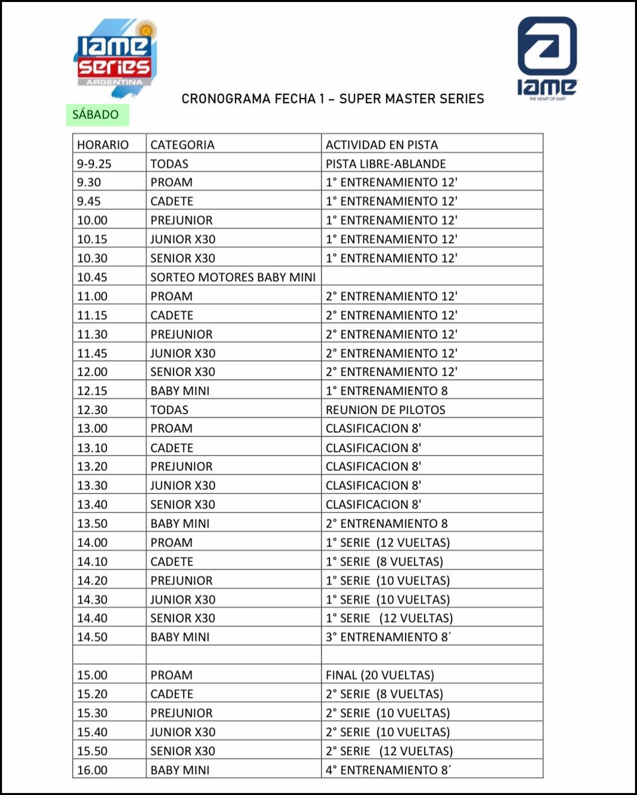 Este fin de semana dará inicio el segundo torneo del año de IAME Series Argentina denominado “Super Master Series”. Se espera una gran concurrencia de pilotos de todo el país.