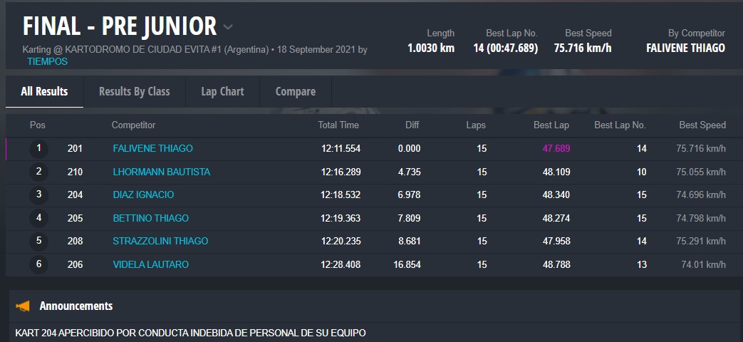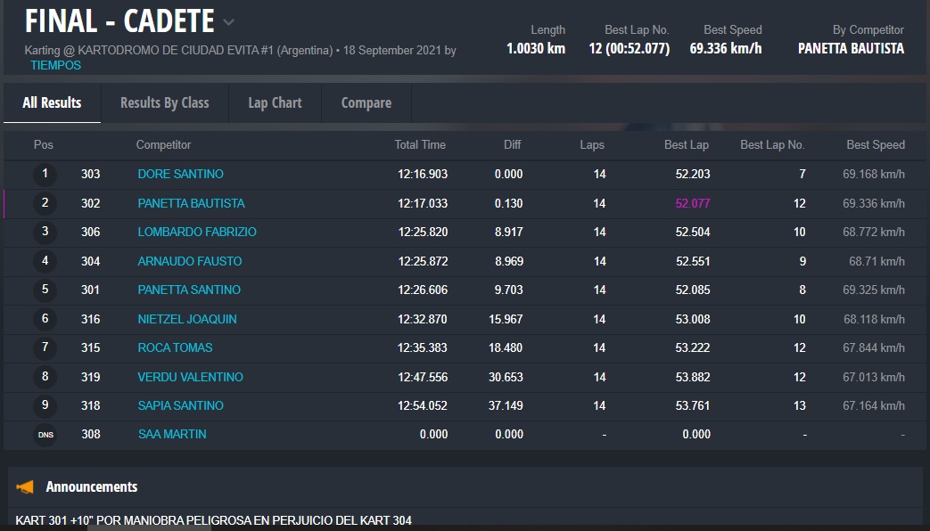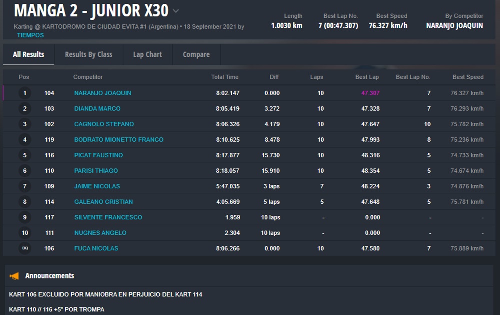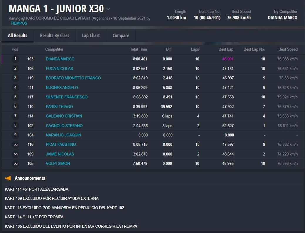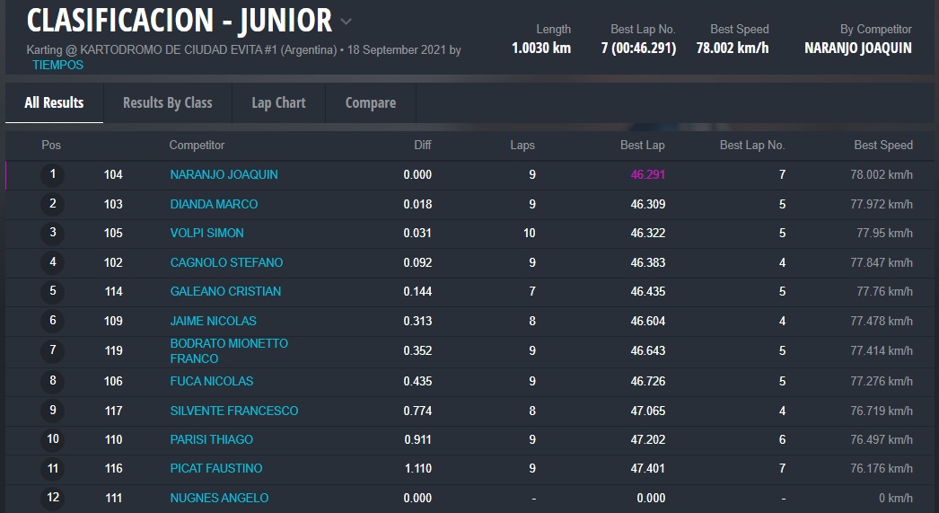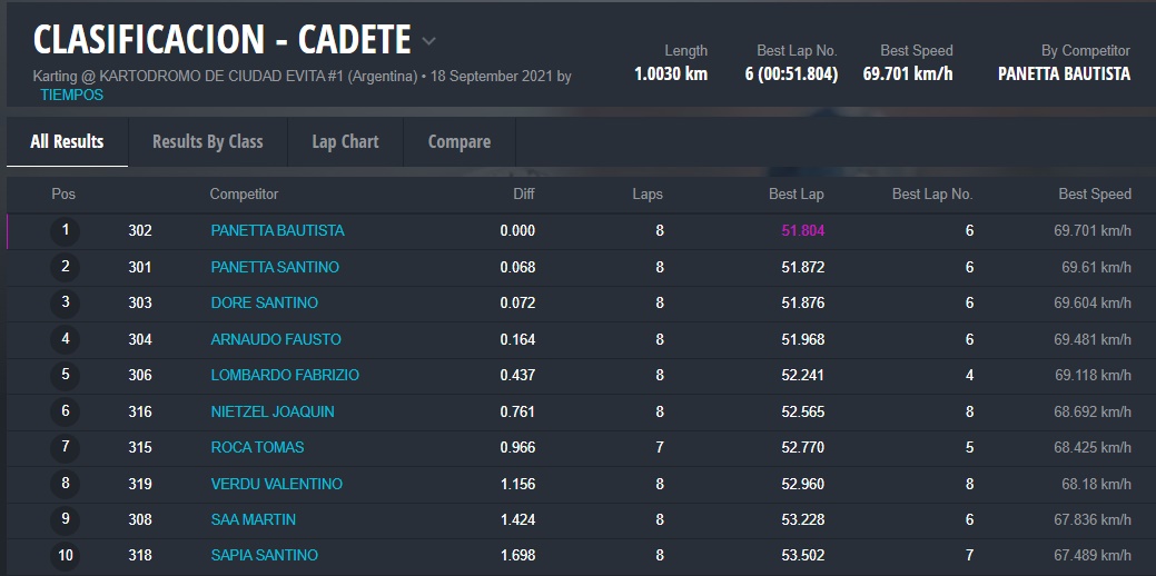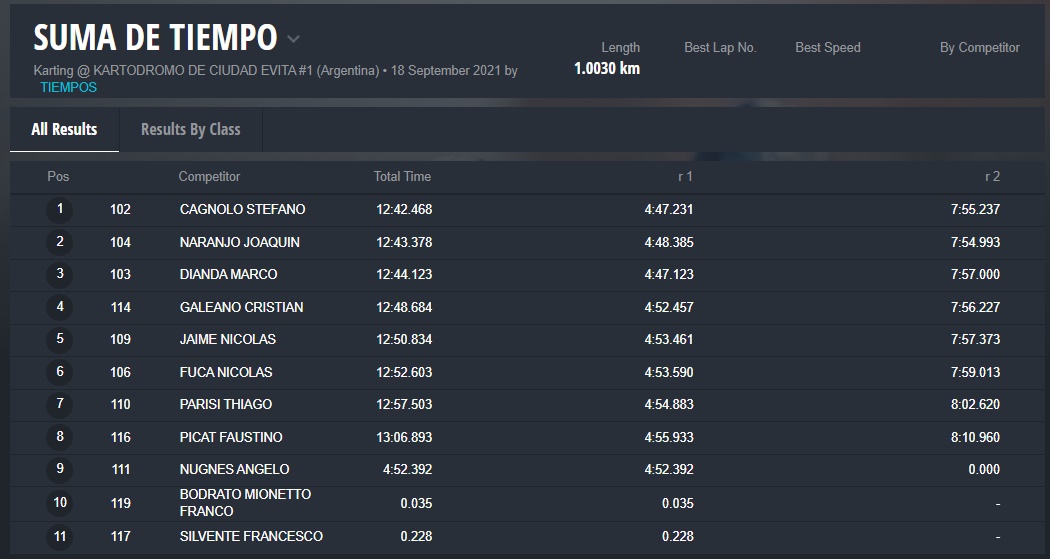 NARANJO GANÓ EN PISTA Y CAGNOLO POR SUMA DE TIEMPOS