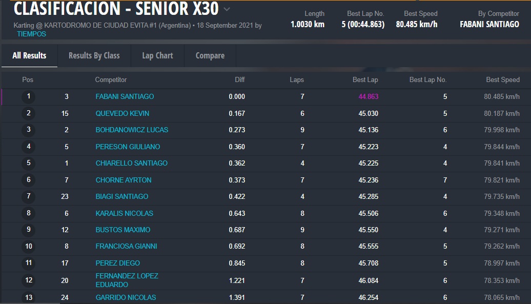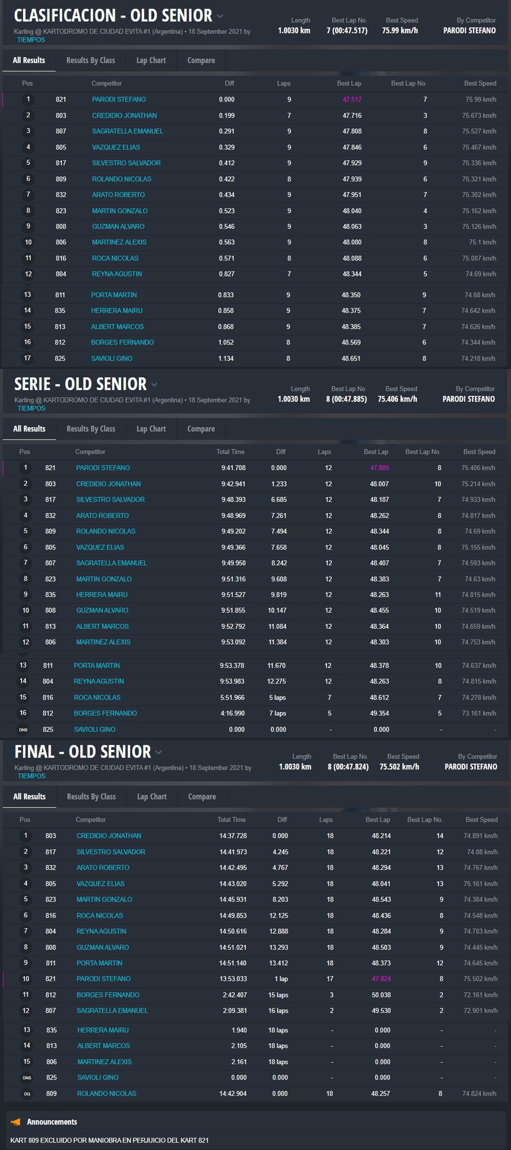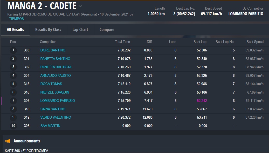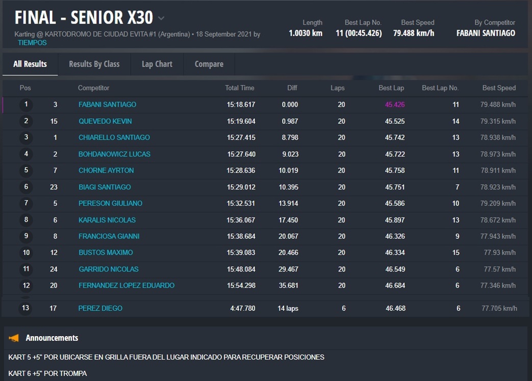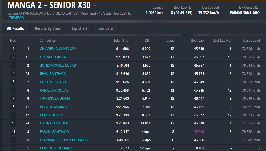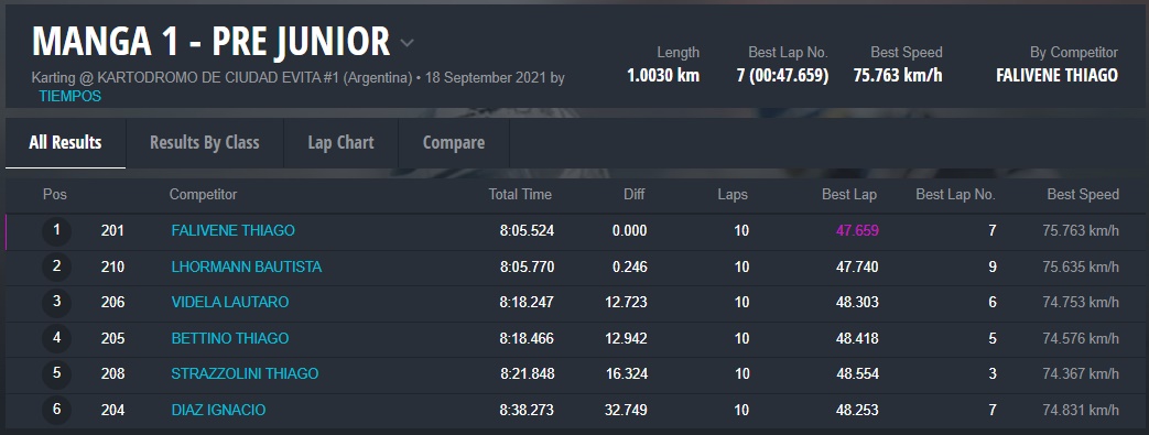 NARANJO GANÓ EN PISTA Y CAGNOLO POR SUMA DE TIEMPOS