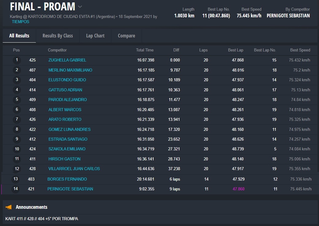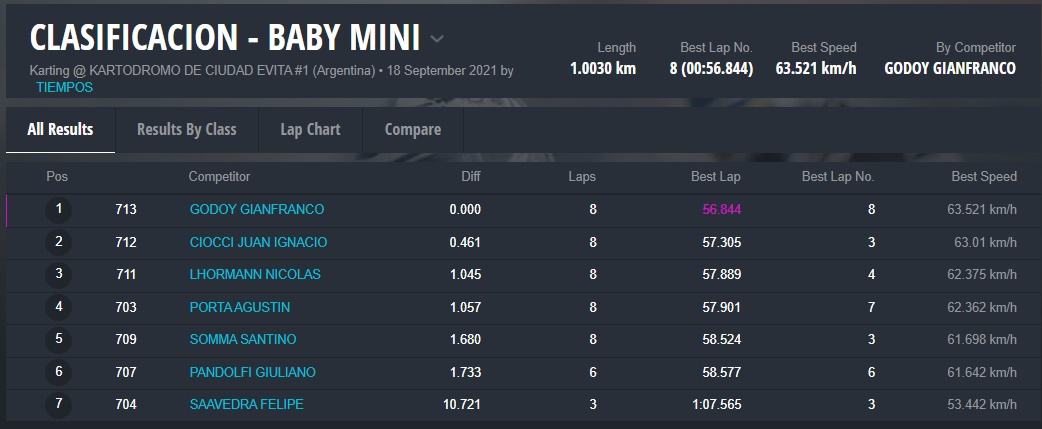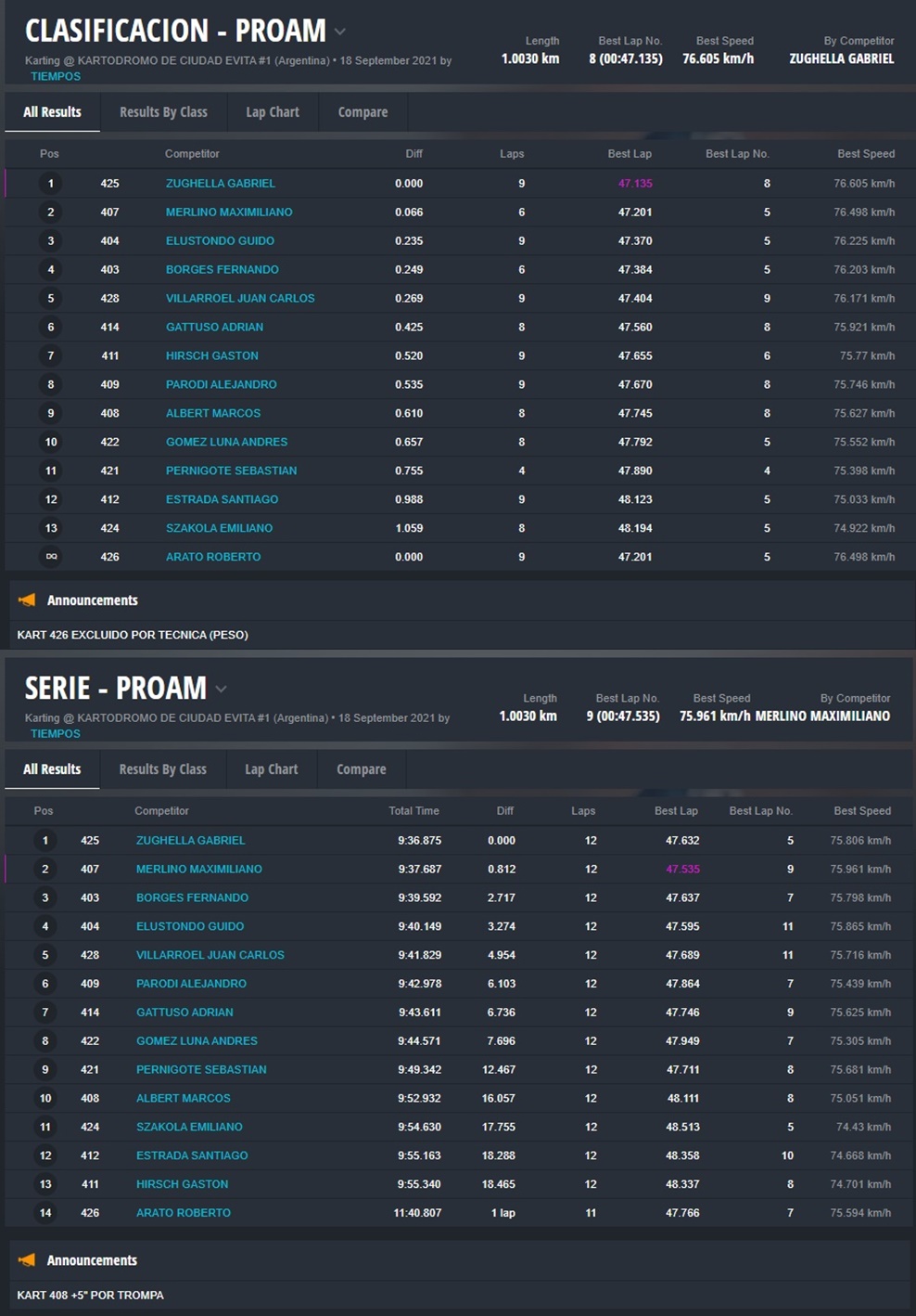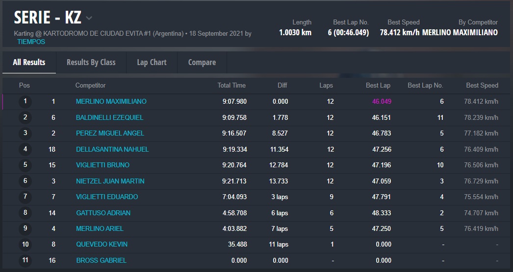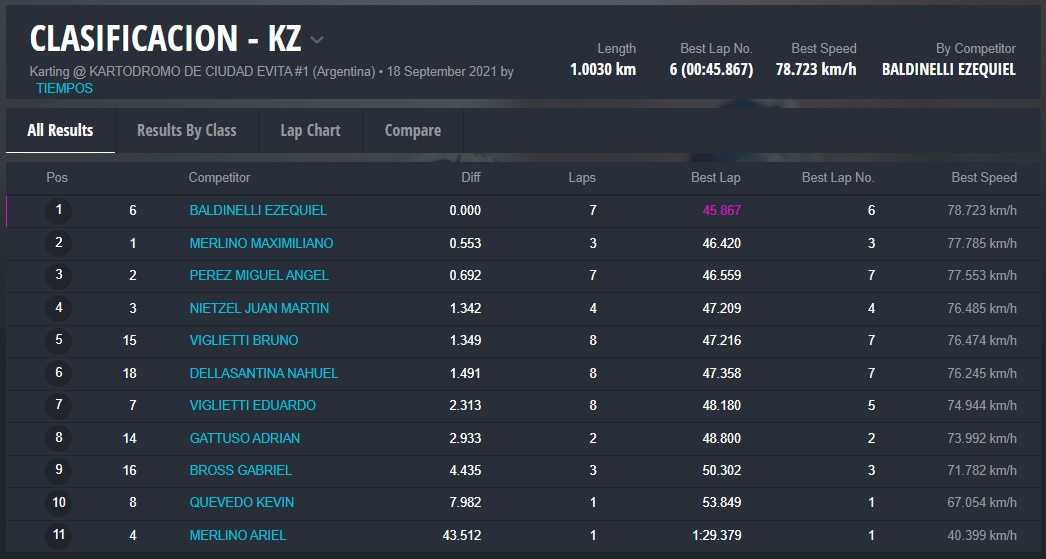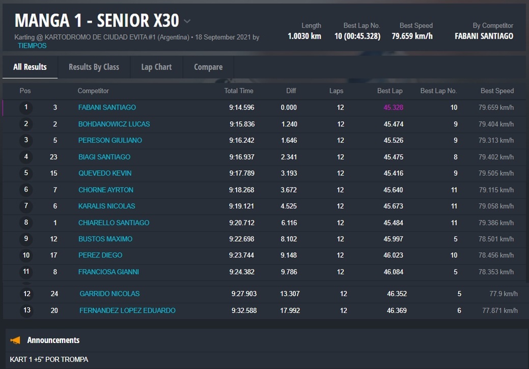 NARANJO GANÓ EN PISTA Y CAGNOLO POR SUMA DE TIEMPOS