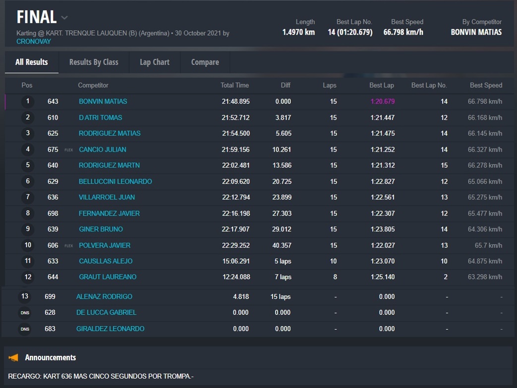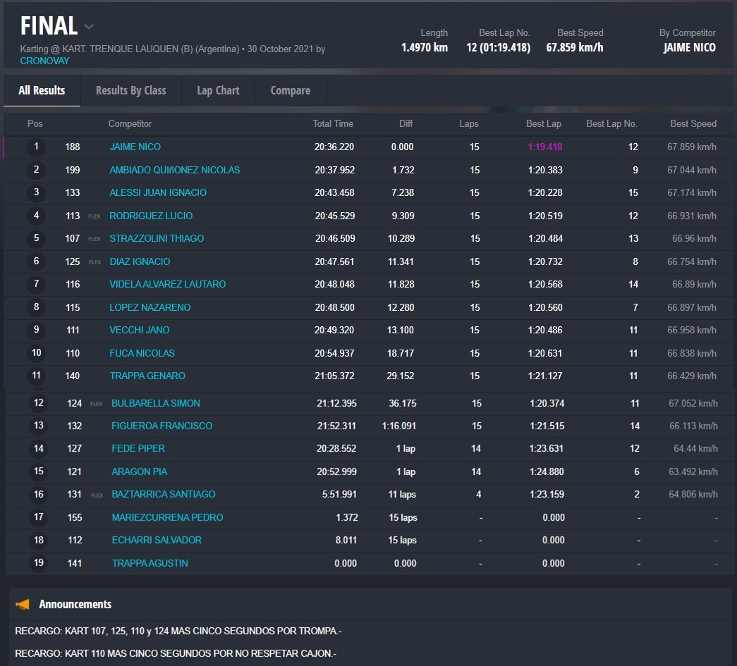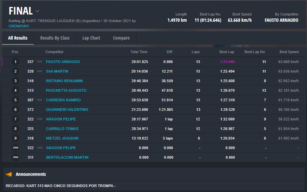 - Manga 1: 1° Nicolás Ambiado 2° Nico Jaime 3° Juan Ignacio Alessi
