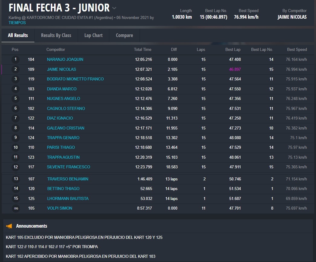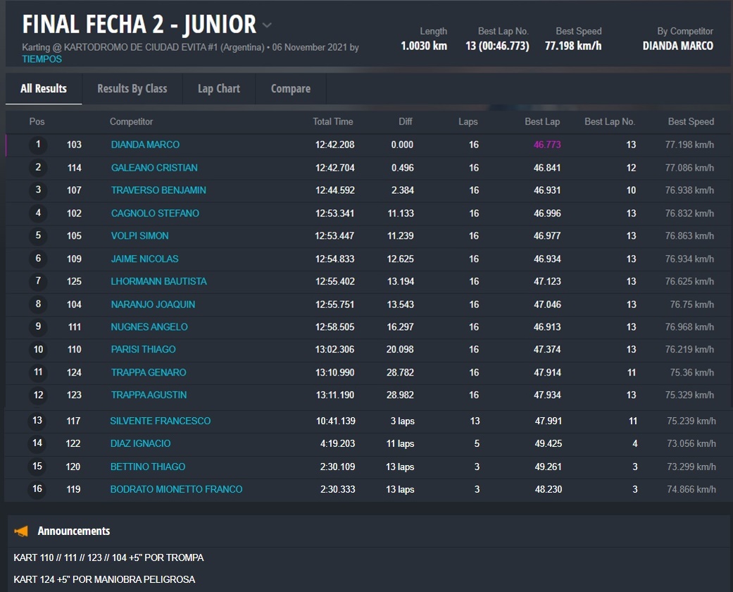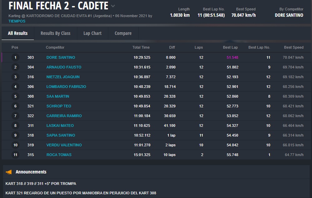 La próxima fecha será el 18 y 19 de diciembre en el Kartódromo de Buenos Aires nuevamente con fecha doble para coronar a todos los campeones.
