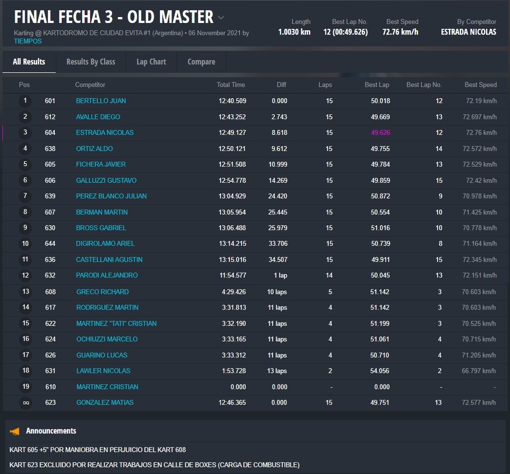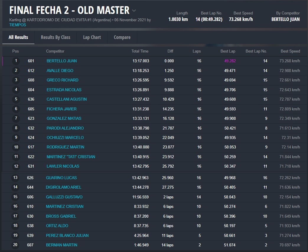 En esta carrera especial hubo pilotos que sumaron dos victorias, como el neuquino NICOLÁS LHORMANN en la categoría Baby Mini, el nacido en Ciudad Evita SANTINO DORE en Cadetes, el de Caballito SANTIAGO FABANI en Senior X30, también ALEXIS MARTÍNEZ en la Old School Senior y el actual campeón JUAN BERTELLO en Old School Master.