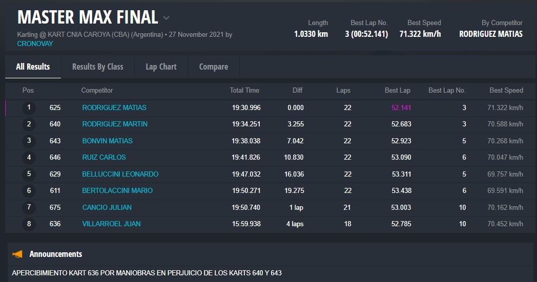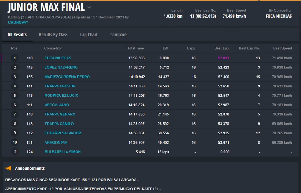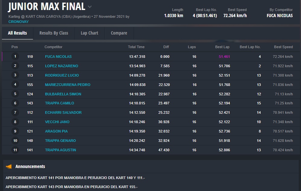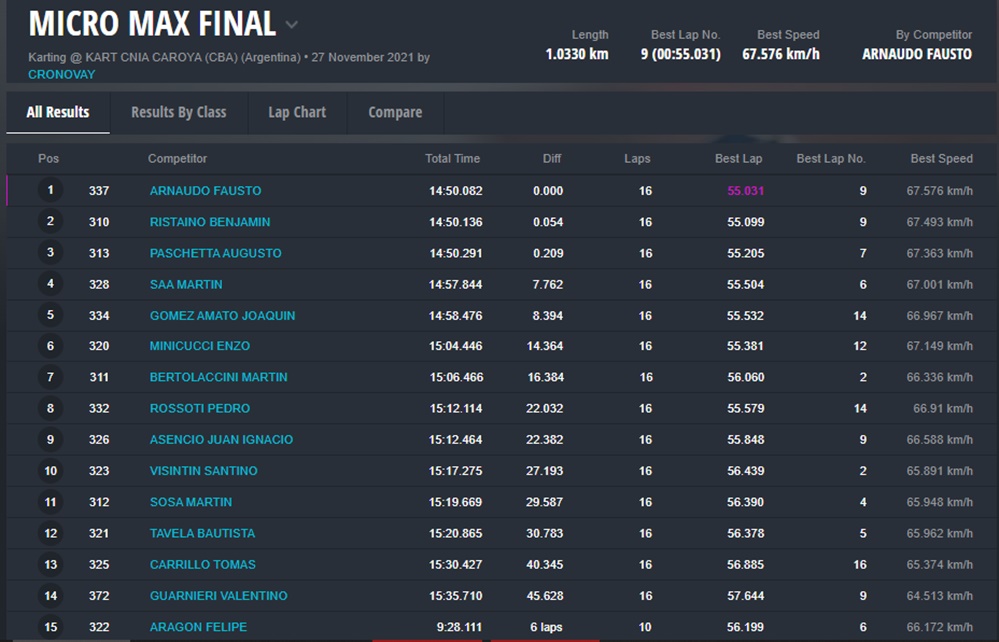 Grimaldi se consagró en forma anticipada en la fecha anterior y se llevó como premio el ticket para participar en la Grand Finals Rotax de Bahrein (11 al 19 de diciembre). En la carrera coronación se conoció el resto de los monarcas.