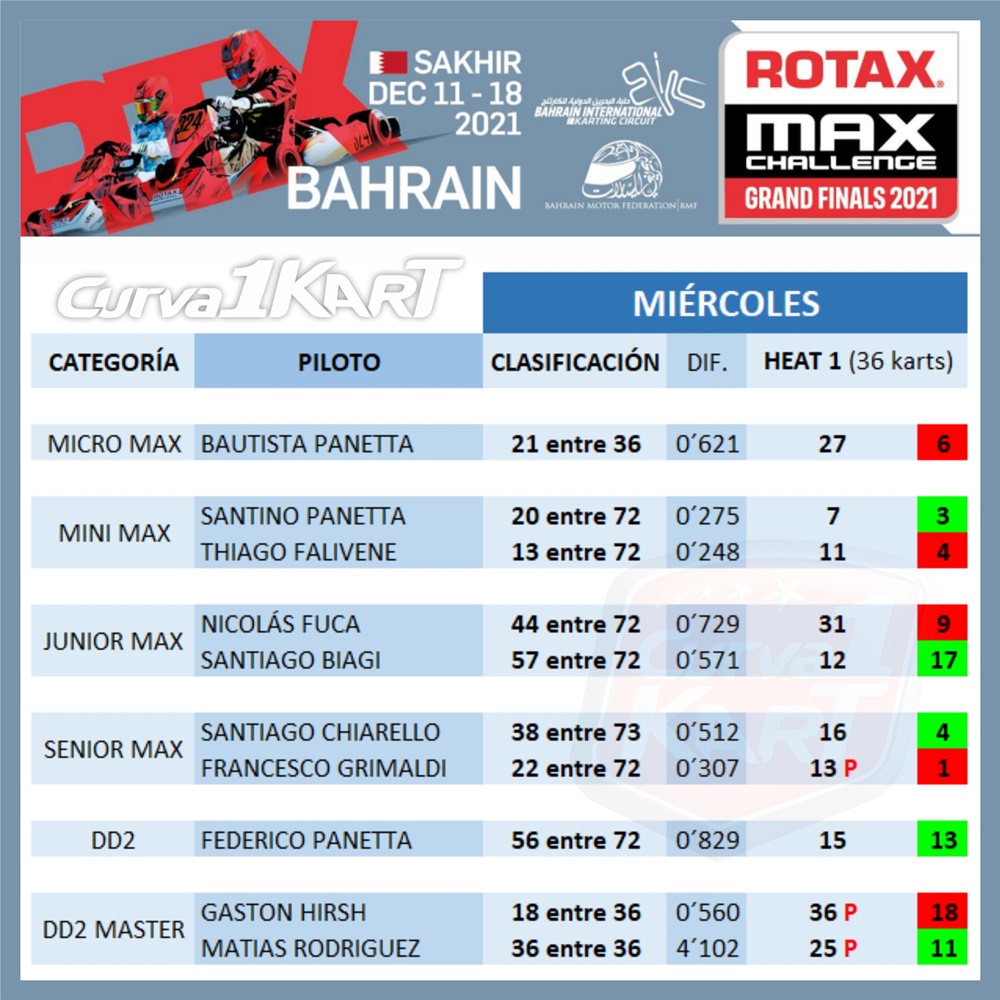 Resultados oficiales del día miércoles con heats de 36 karts.