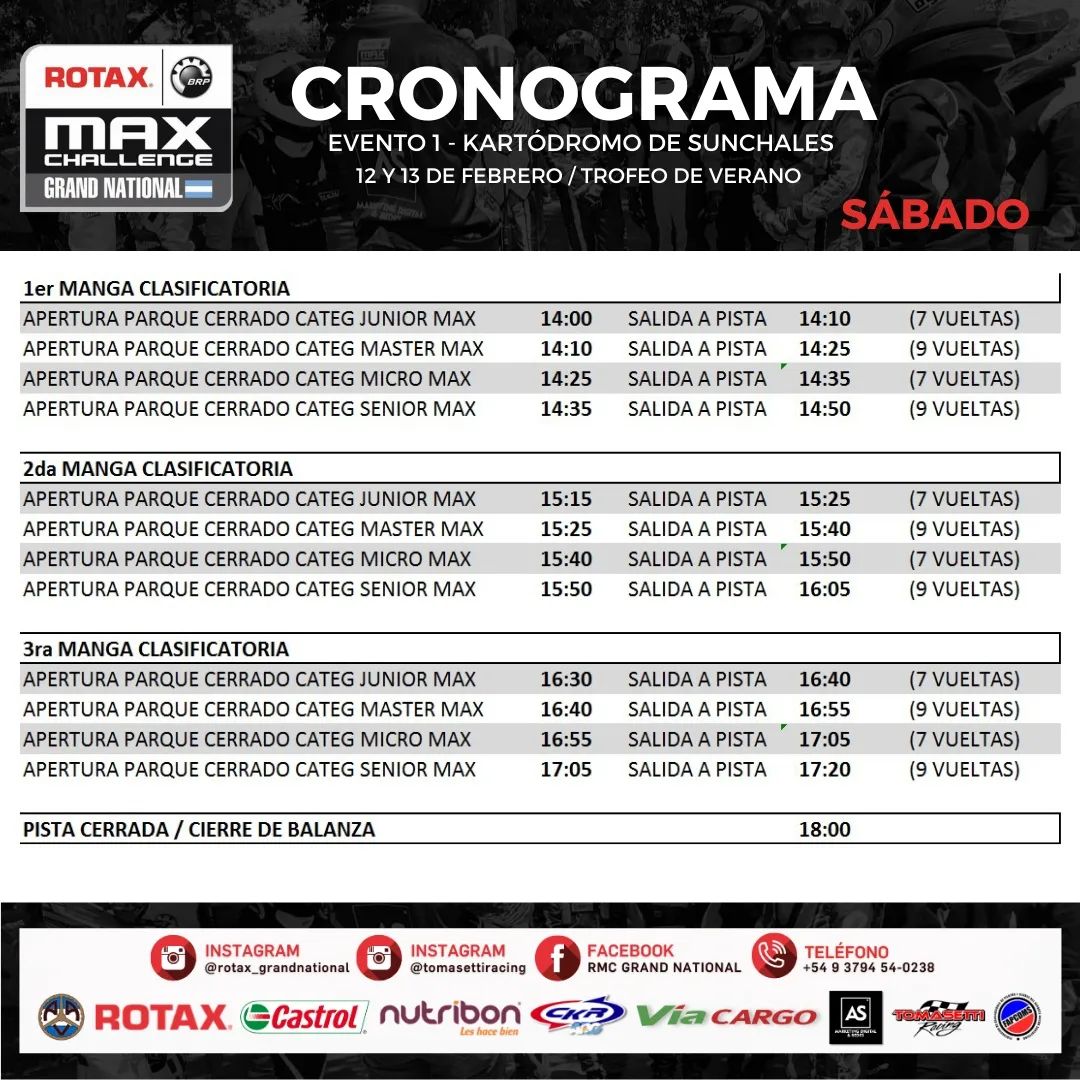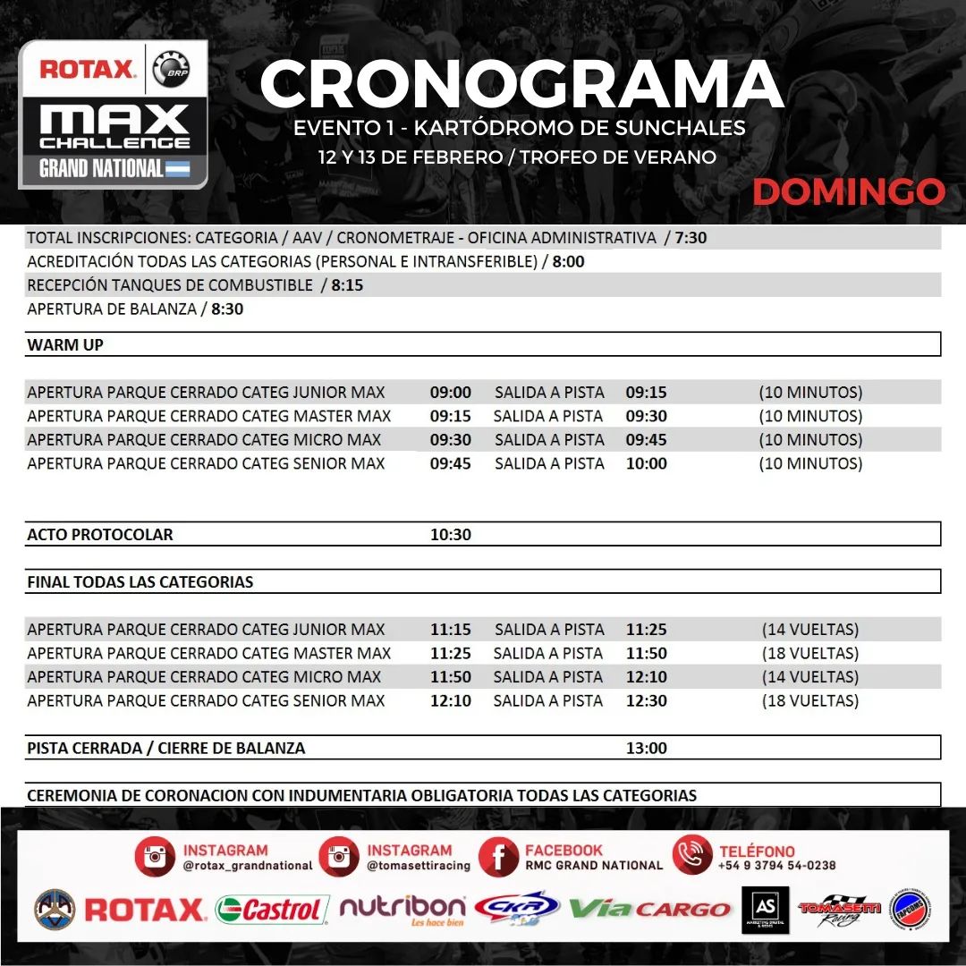 Horarios para el inicio de Rotax Grand National en Sunchales