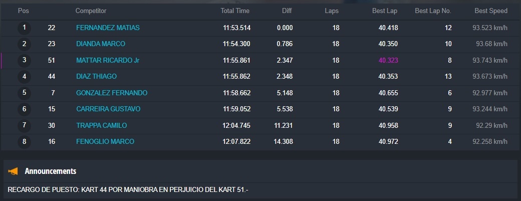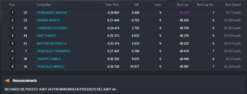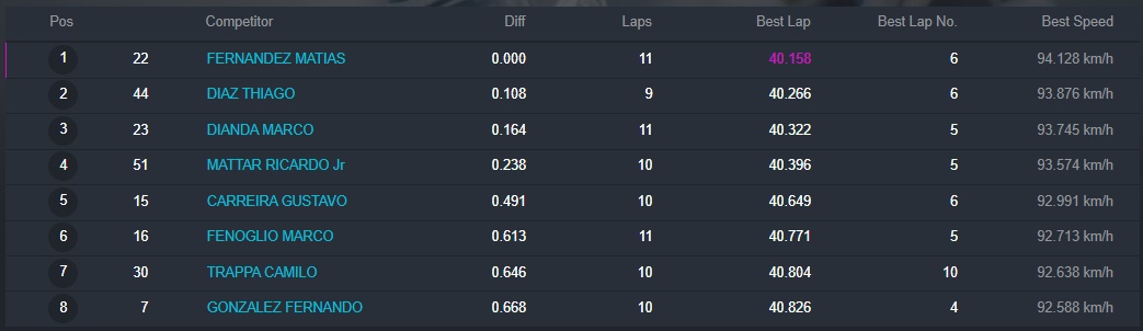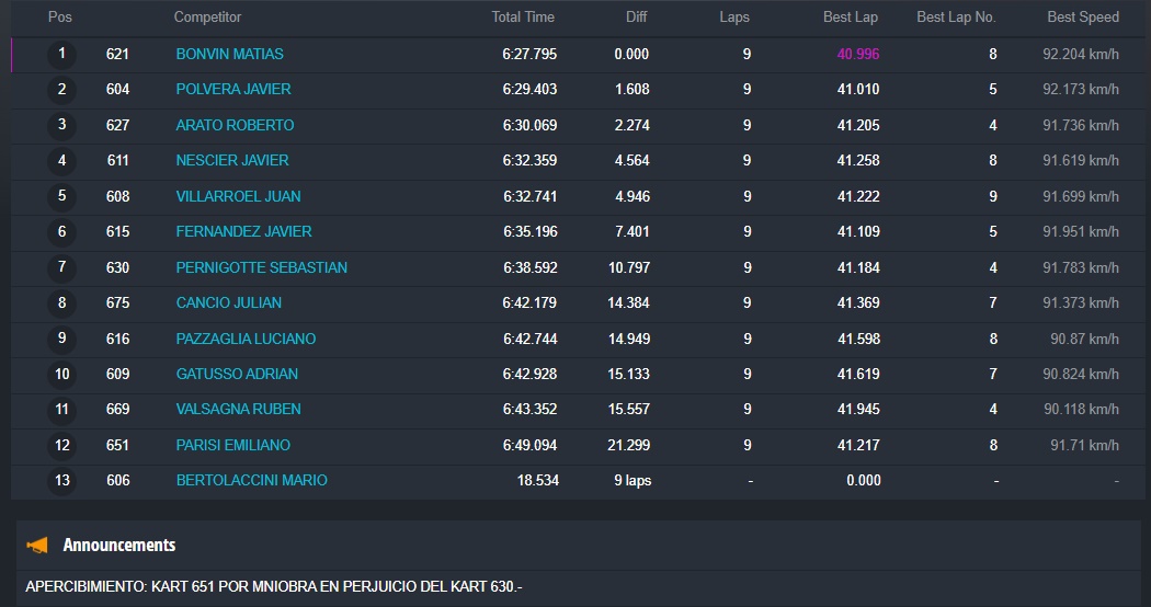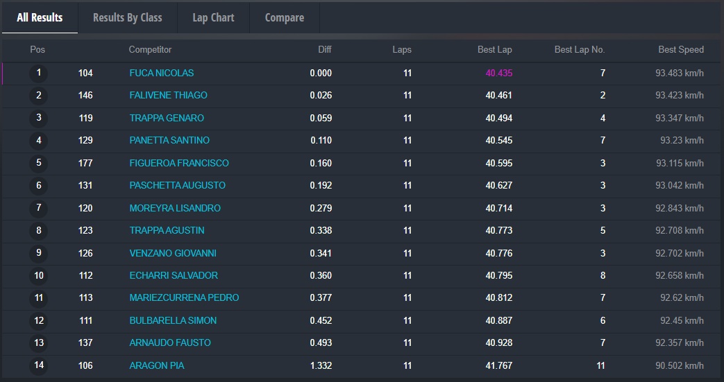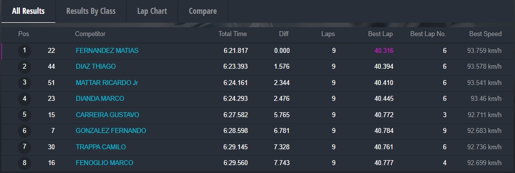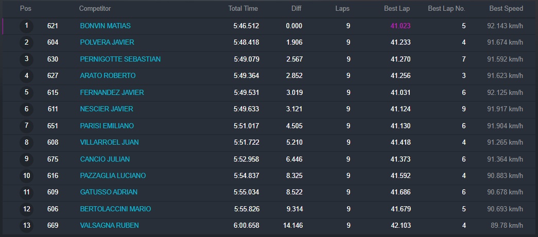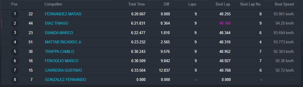 El cordobés Mati Fernández fue dueño de SENIOR MAX al quedarse con todo. El piloto oficial CKR se lució y este domingo va por la victoria que se le ha negado en las dos carreras anteriores. Thiago Díaz (dos veces) y Marco Dianda fueron los escoltas.