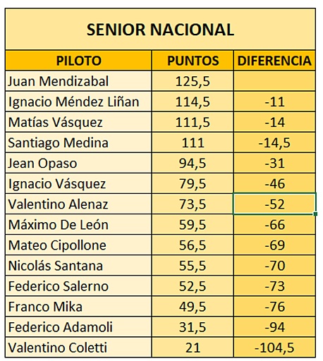 - 106 PUNTOS – Junior y Senior Nacional (corren juntas) y Master Nacional