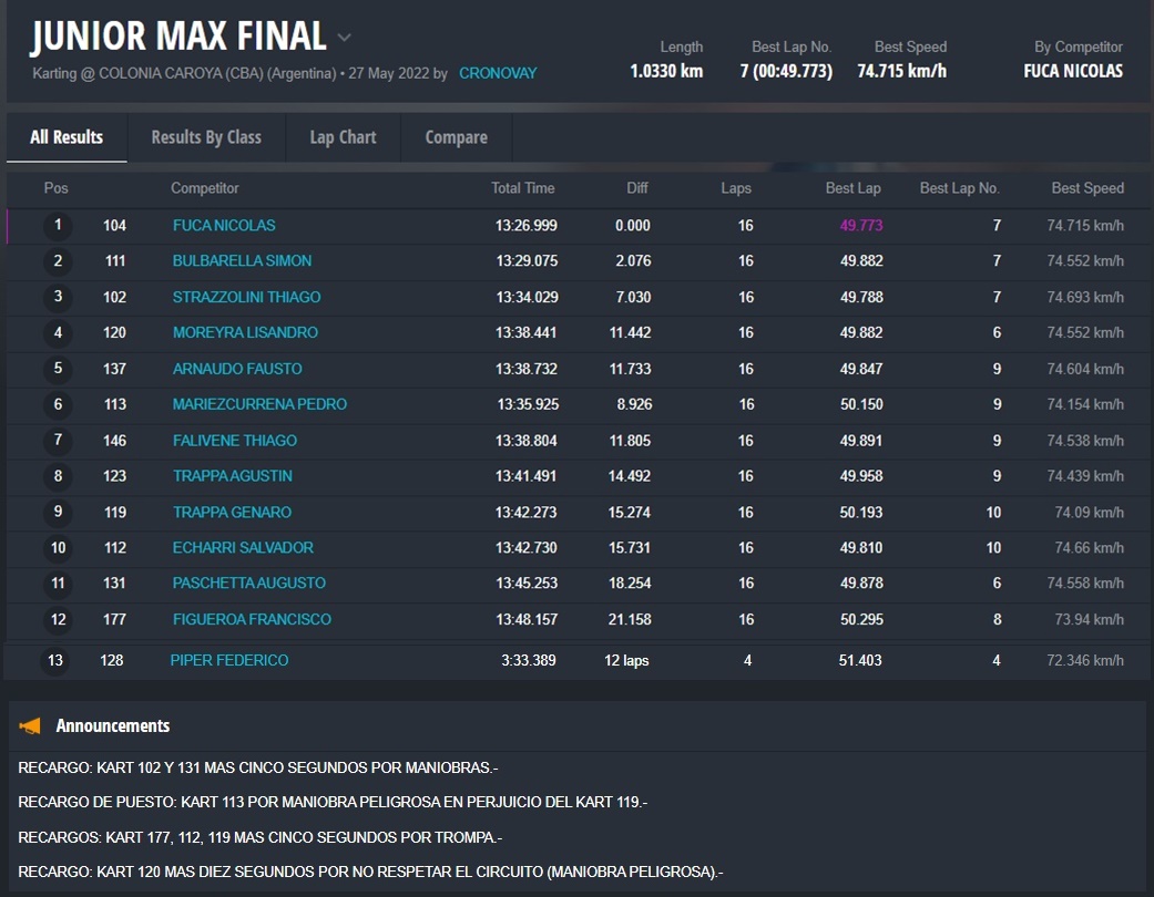Fue un día especial ya que se conocieron los campeones de las 4 categorías, aunque algunos prefieren esperar hasta mañana para sumar los últimos puntitos para festejar.