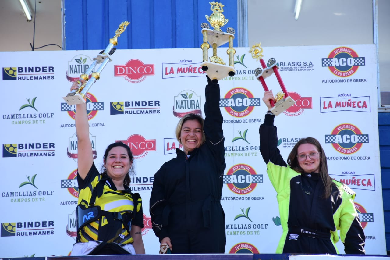 En Copa Damas, las chicas brindaron un espectáculo parejo, fue comandada por la local Melisa Barrios que buscaba hacerse fuerte en su “casa” muy de cerca la seguía Martina Mrakava (Oberá). Con el correr de las vueltas, Barrios pudo sacar alguna ventaja pero lo más importante que llegó la bandera a cuadros y llegó el primer triunfo de Melisa Barrios, muy festejado por su familia después de tanto tiempo.