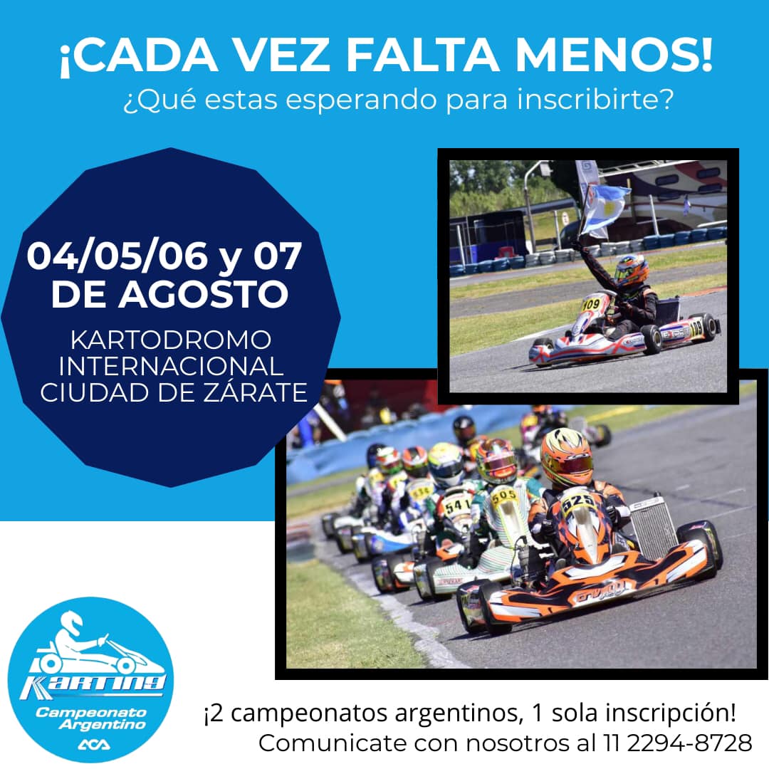 Asimismo, les informamos que, tratándose de una única competencia nacional en el año, la escala de valores prevista para las licencias deportivas sufrirá una importante bonificación, quedando los valores para el evento del Campeonato Argentino de Karting que se realizará los días 4 al 7 de julio en el Kartódromo de la Ciudad de Zárate de la siguiente manera: