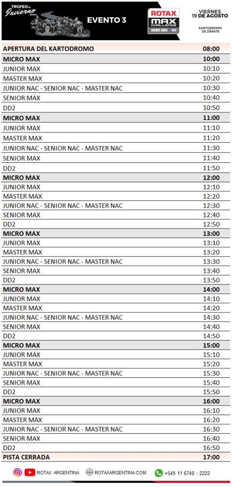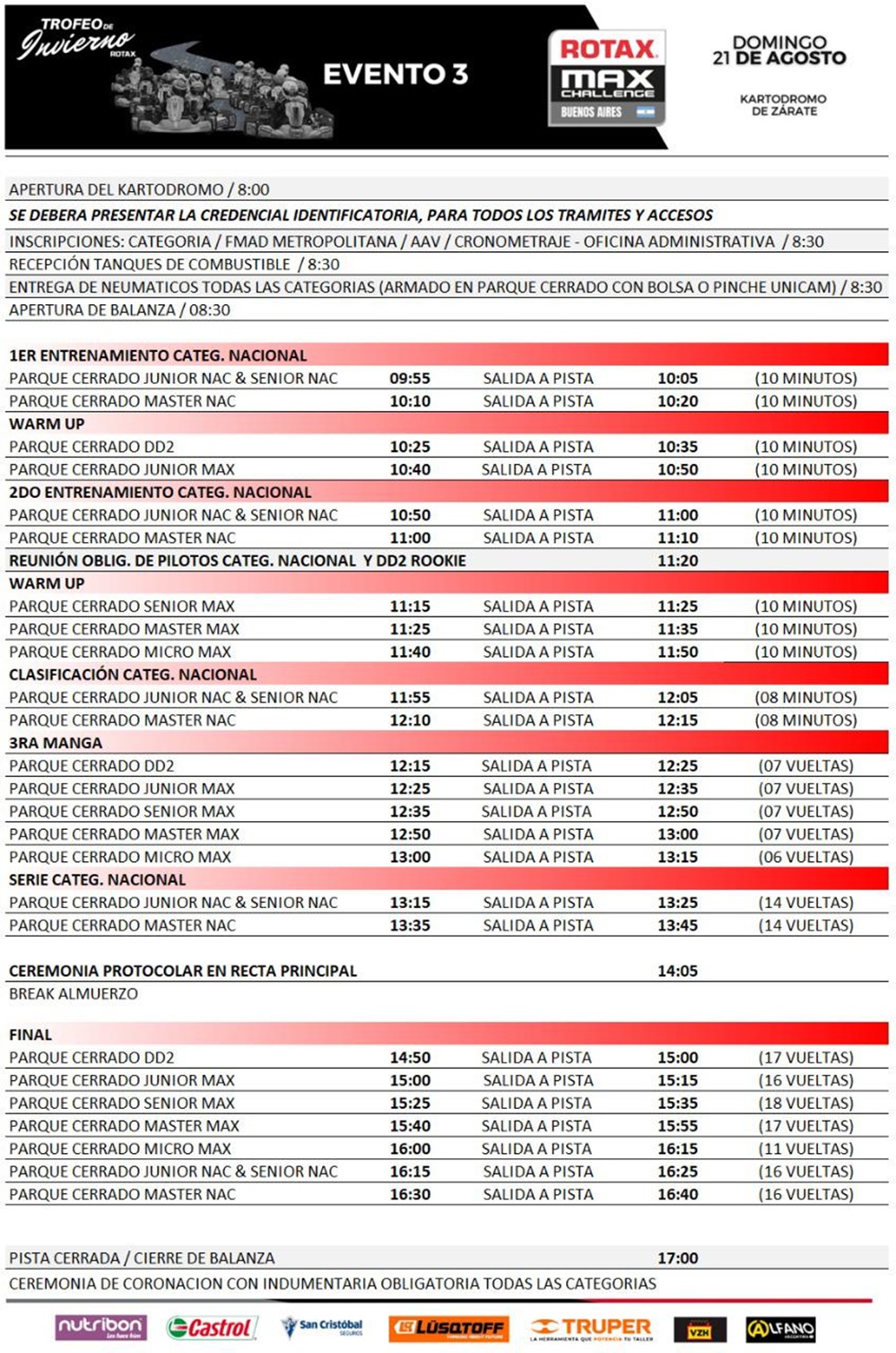 Esta 3° competencia del Torneo Invierno será sábado y domingo en el internacional de Zárate, usando esta vez el circuito 4 en sentido anti horario. Será la última visita a este trazado en el año, ya que luego solo restará definir a los campeones del “Invierno” el 25 de setiembre en Buenos Aires.