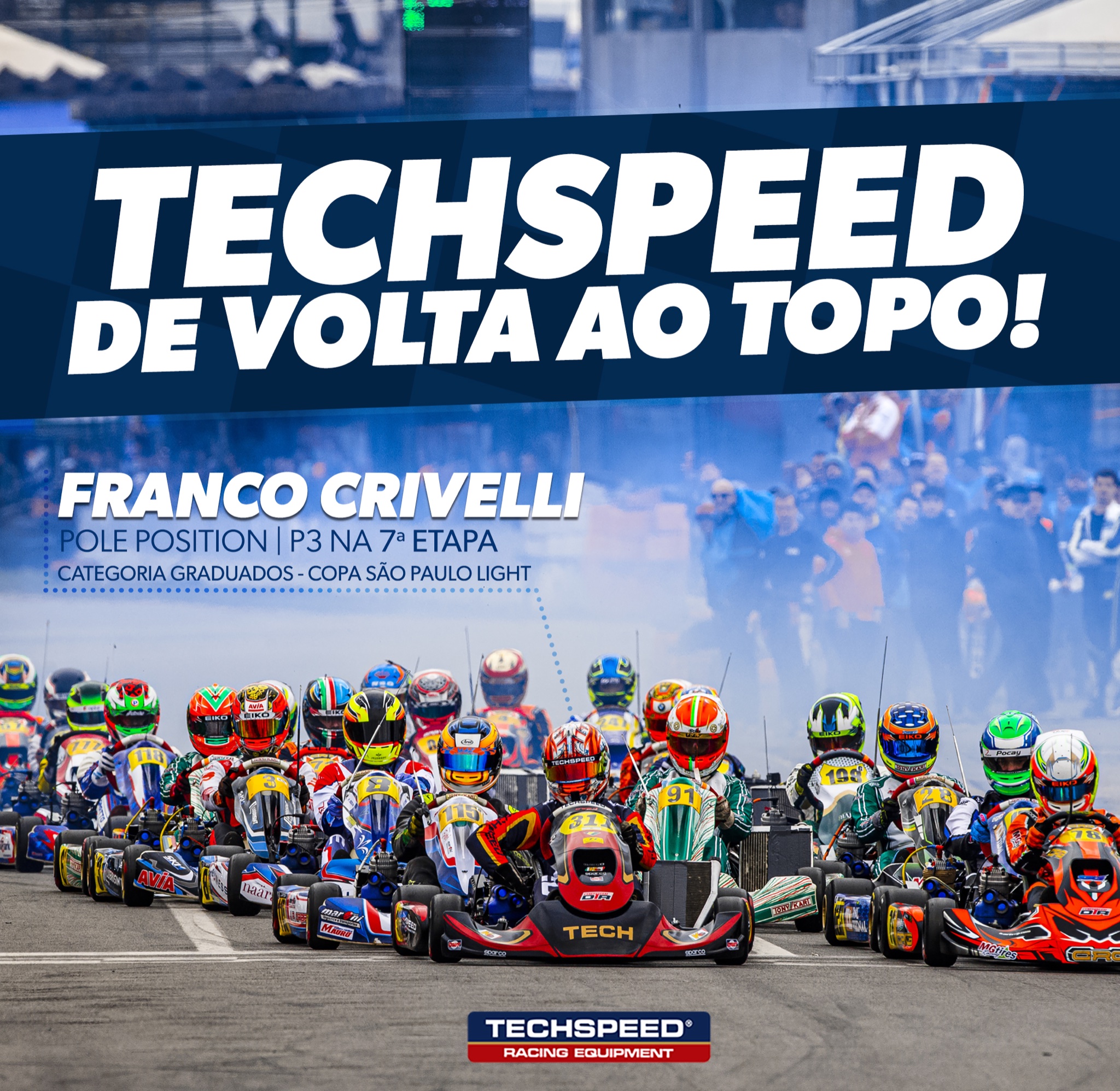 A poco días de haberse consagrado Tetracampeón Argentino Senior, Crivelli viajó a San Pablo para correr en un kart de la fábrica Techspeed y motorización de DRT Motorsport.
