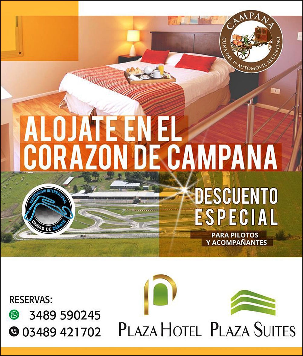 Curva 1 KART recomienda alojarse en PLAZA SUITES CAMPANA, a menos de 15 minutos del Kartódromo de Zárate, con rápidos accesos y con descuentos especiales para pilotos, equipos y acompañantes que asistan al evento.