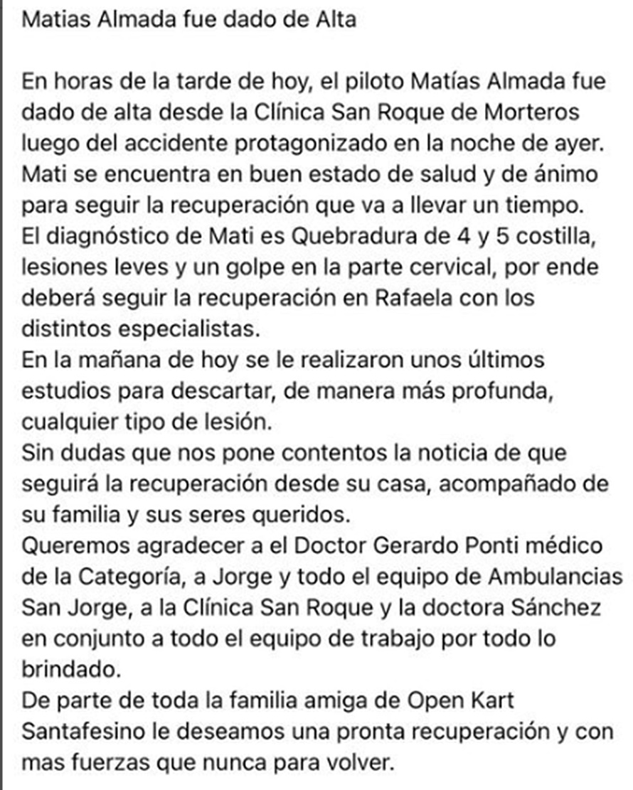 ARGENTINA / VIDEOS · 14/09/2022 Impactante accidente en el Open Kart Santafesino en Suardi Largada accidentada en el Open Kart Santafesino en la localidad de Suardi. La categoría Open Kart Santafecino emitió luego del acciente el siguiente comunicado: