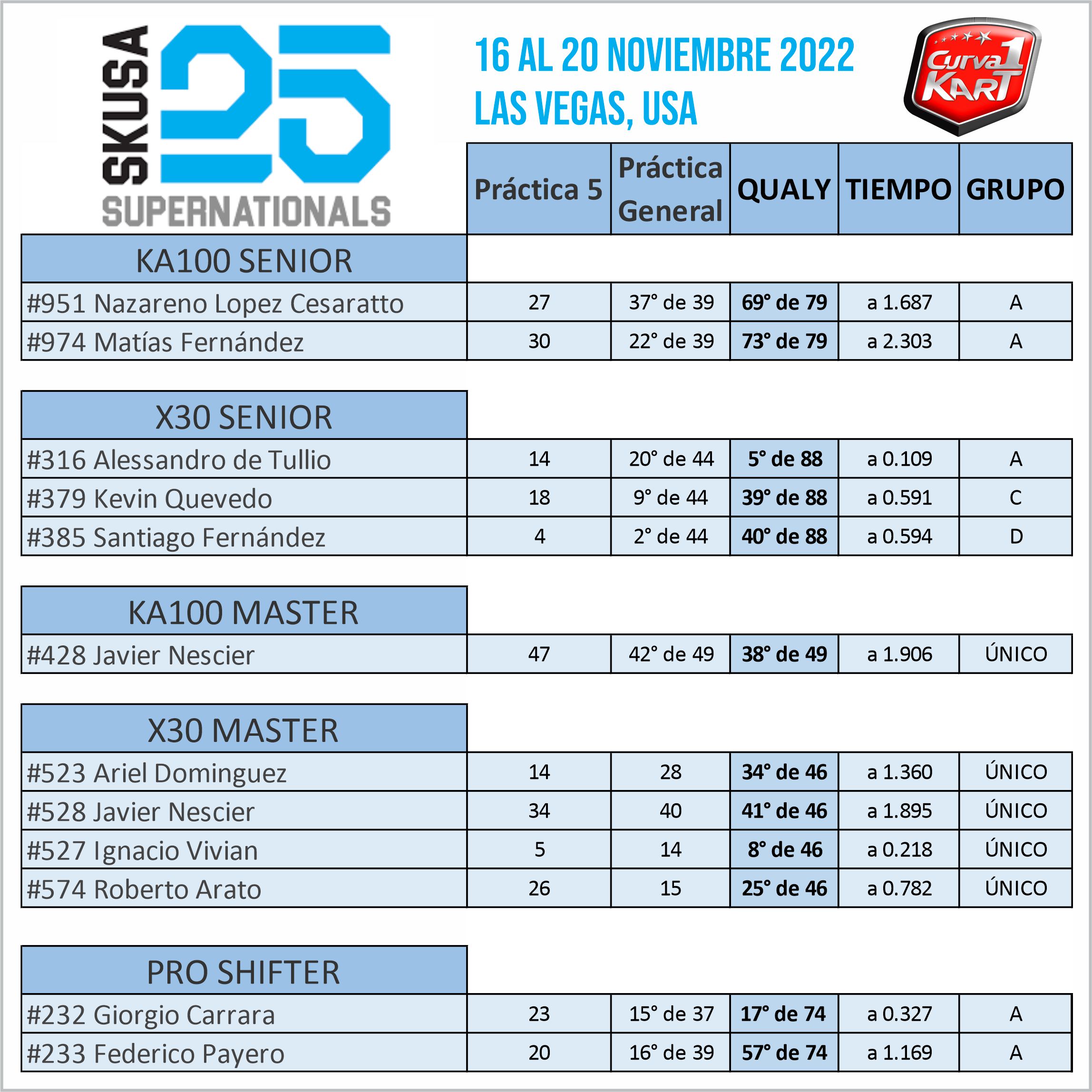 Este jueves los pilotos argentinos completaron la clasificación de SKUSA Supernationals 25 que se está desarrollando en el parking del Hotel Río ubicado en la populosa ciudad de Las Vegas.