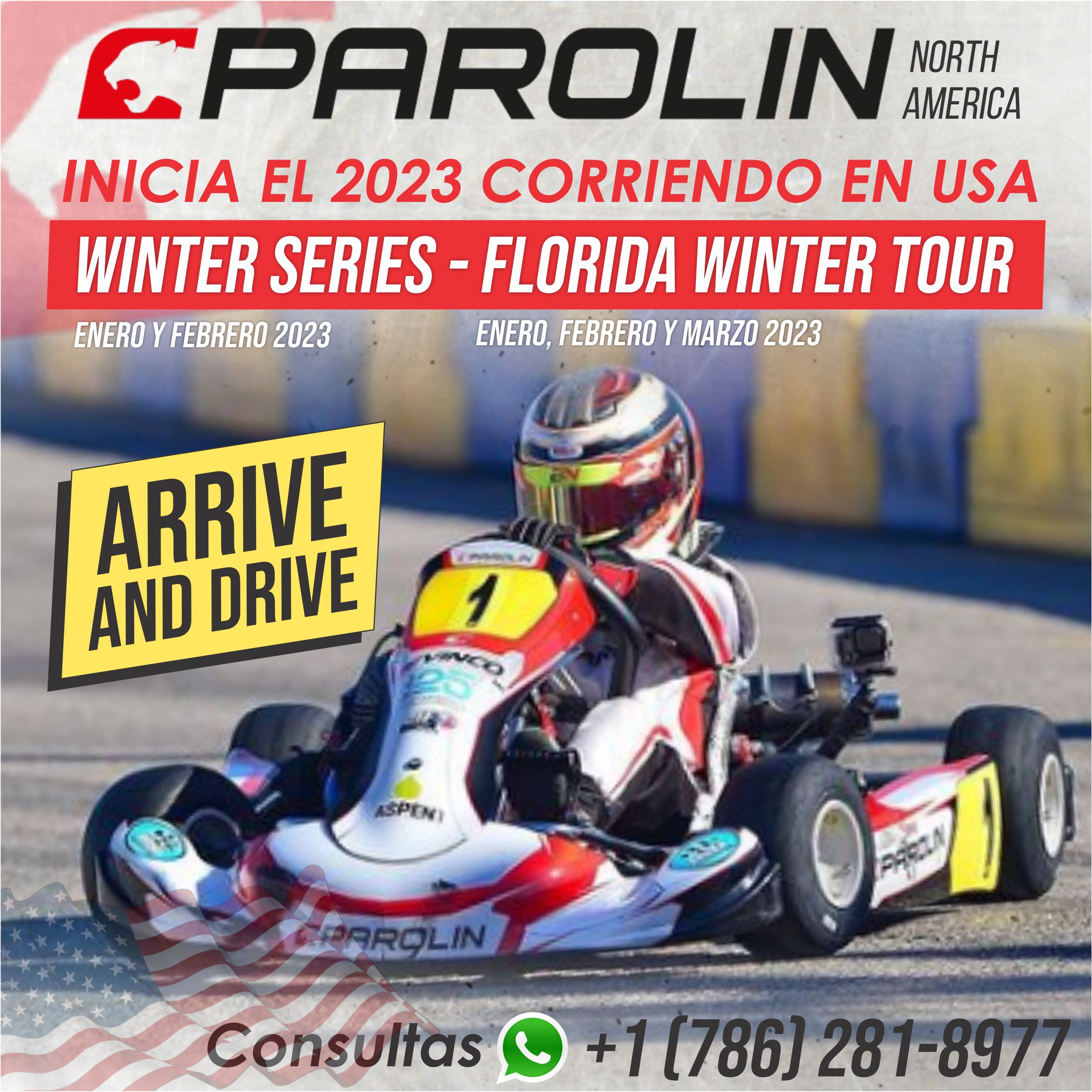El equipo PAROLIN USA 🇺🇸 te invita a ser parte de los prestigiosos torneos Winter Series (motores IAME) y Florida Winter Tour (motores ROK), en las pistas más famosas de Estados Unidos.