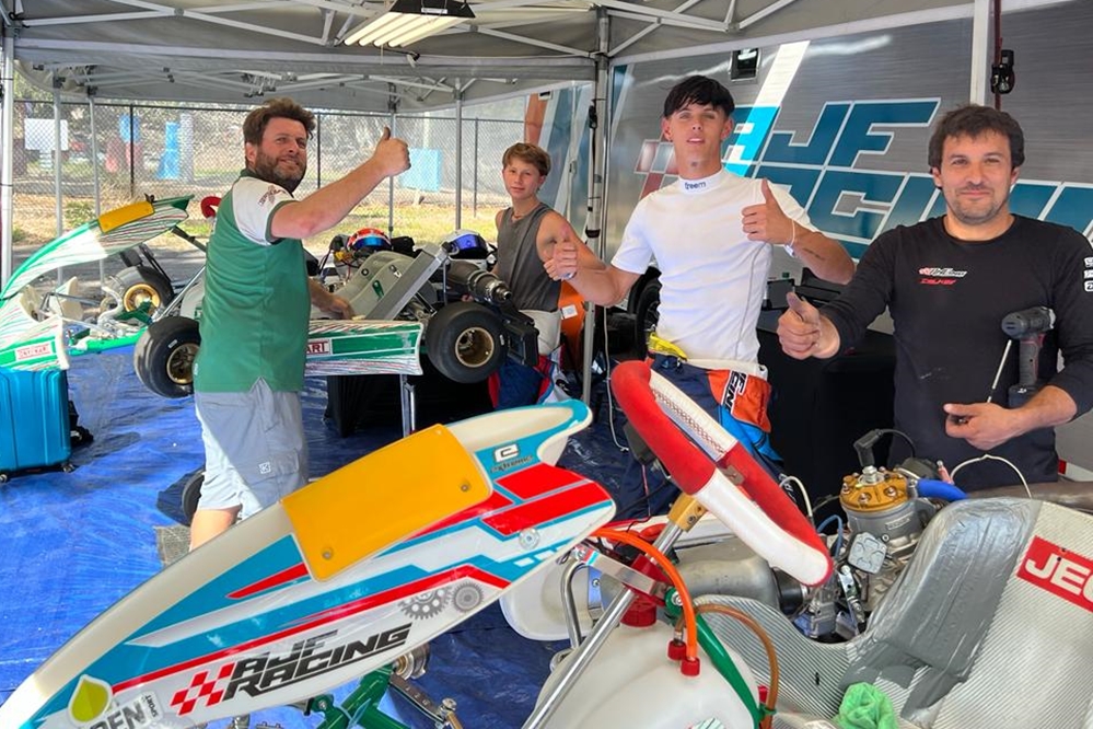 Simón Bulbarella tuvo dolores en un costado de su cuerpo y junto con su preparador Lucas Zaffaroni decidieron no seguir corriendo, pensando en su compromiso con el Argentino de Kart. Solo disputó la clasificación y una manga.