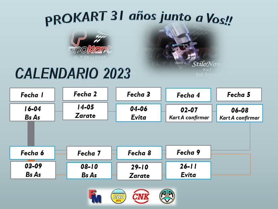 La primera fecha del 2023 será el domingo 16 de abril en el Kartódromo de Buenos Aires, circuito que abrirá el fuego anual con las categorias Mini Promo, Junior 135cc, General 135cc, General Mayores, Low Cost y la Amateur Light 135cc que transitará su segundo año de existencia.