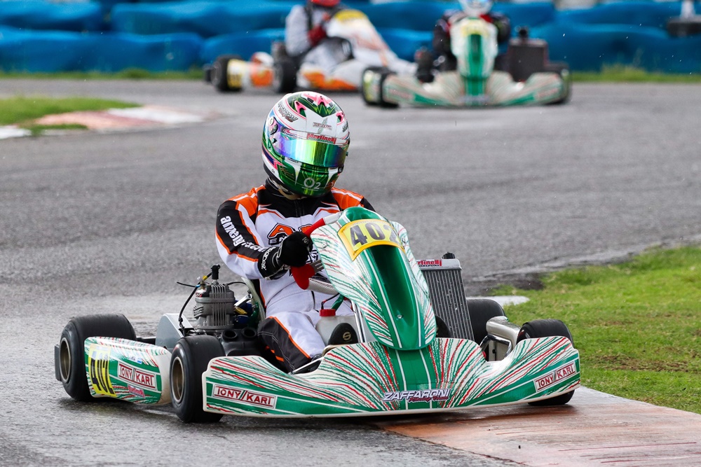 Nicolás Rolando quedó segundo, dándole el 1-2 al team Zaffaroni Kart, mientras que completó el podio el cordobés “Tito” Arato, del equipo BirelART Argentina.
