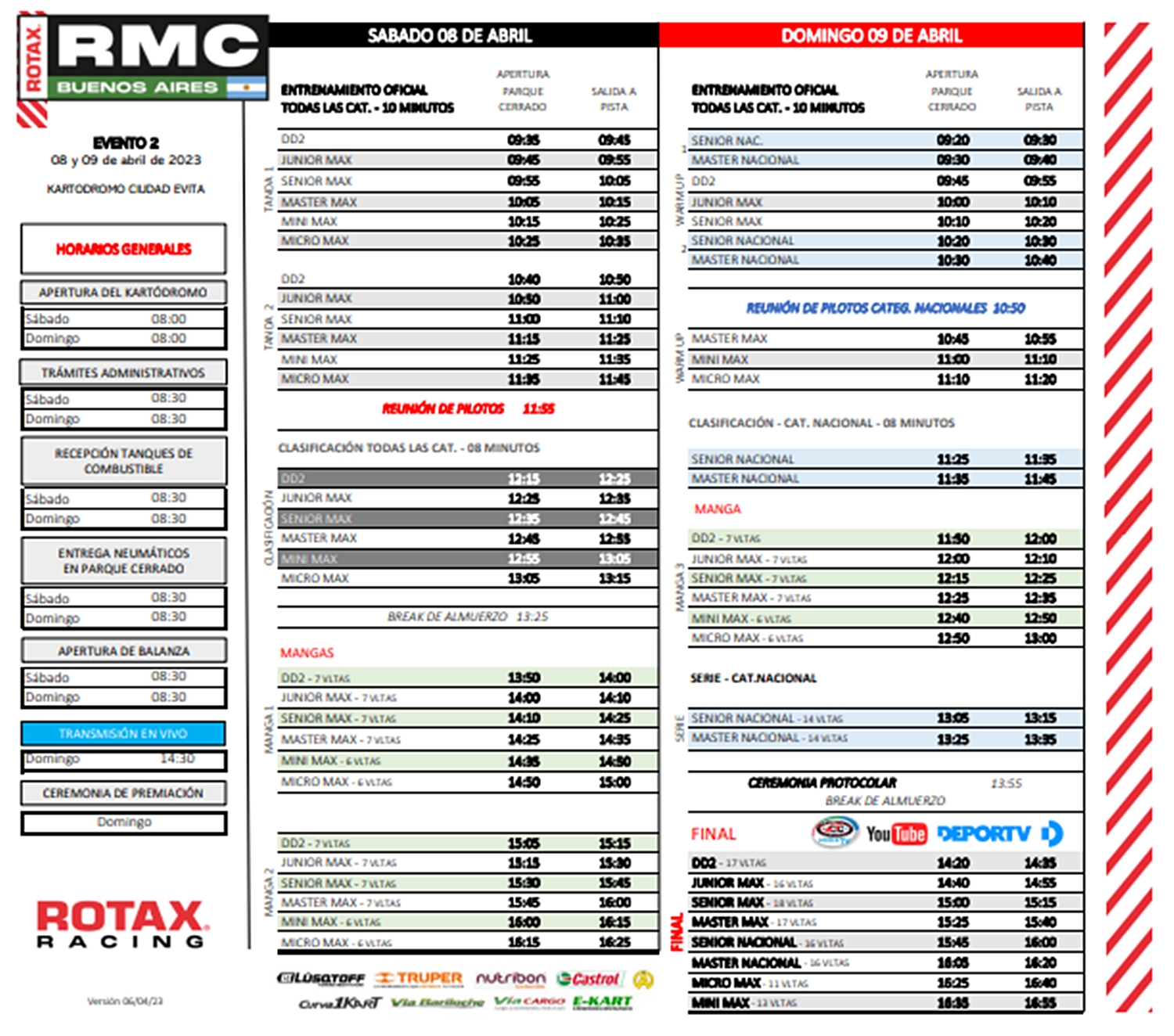 Este viernes hubo prácticas no oficiales dividos por categoría y para el finde queda toda la actividad oficial, con transmisión “en vivo” de las carreras finales por Youtube de Rotax Argentina y el canal DeporTV.