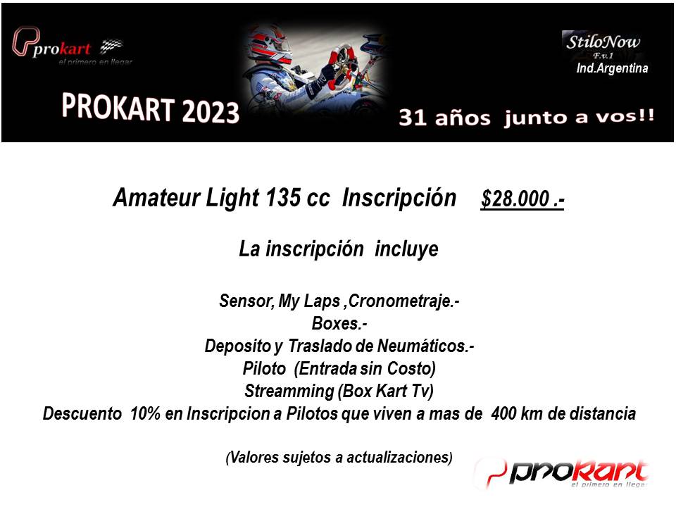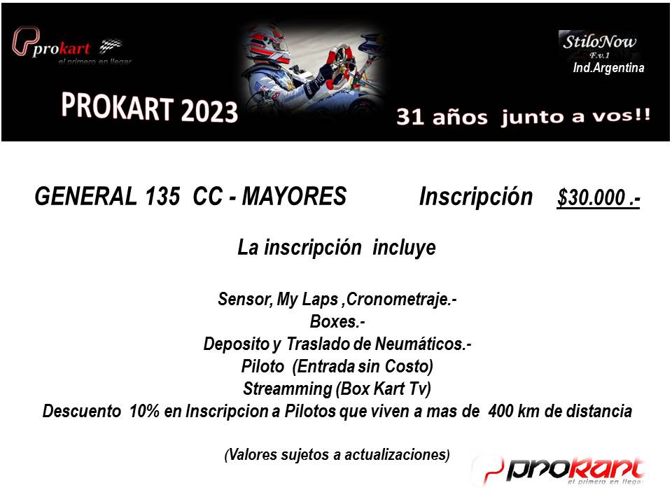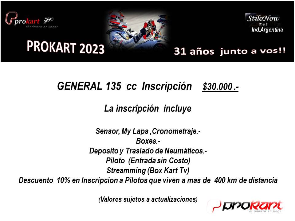 La carrera será el 15 y 16 de abril en el Kartódromo Internacional de Buenos Aires, donde estarán participando las categorías Mini Promo, Junior 135cc, General 135cc, General Mayores, Low Cost y Amateur Light 135cc.
