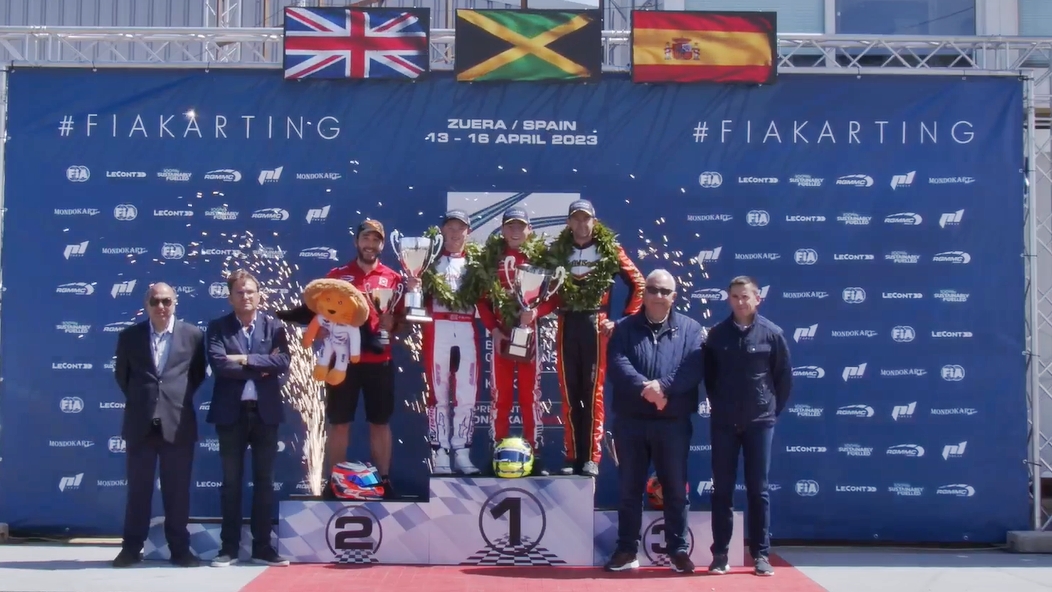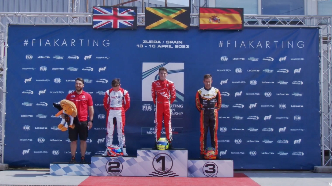 JORGE PESCADOR fue uno de los destacados al culminar 3° en la final de la categoría KZ2. El piloto argentino radicado en Valencia (España) compartió el podio con Alex Powell (Jamaica) y Freddie Slater (Inglaterra).