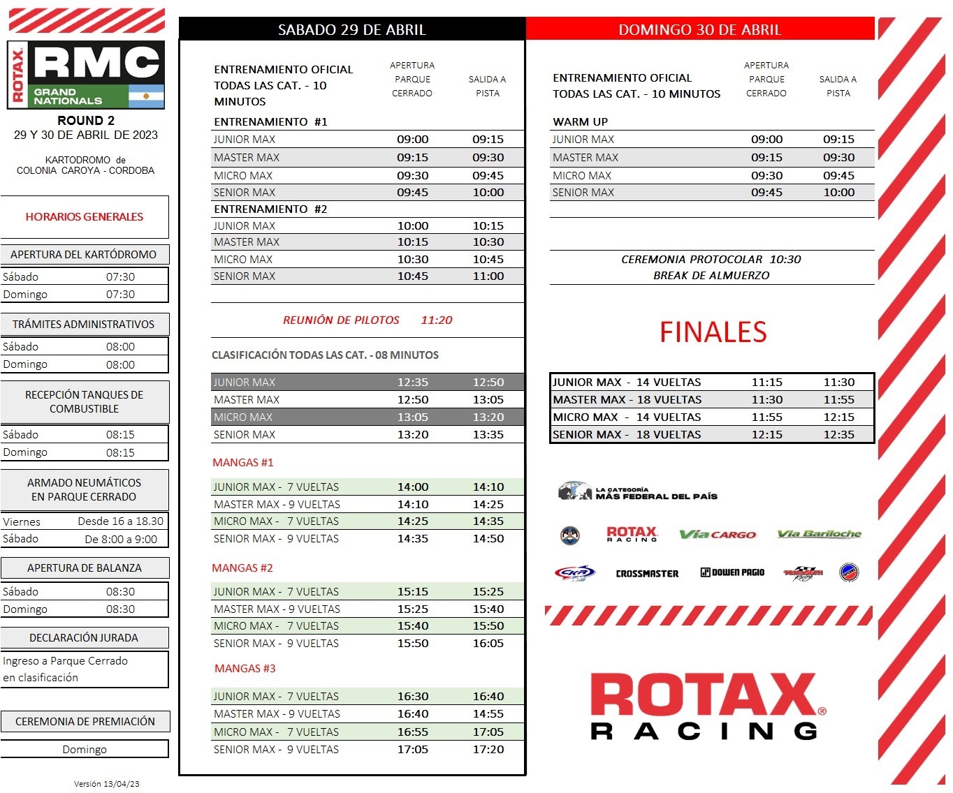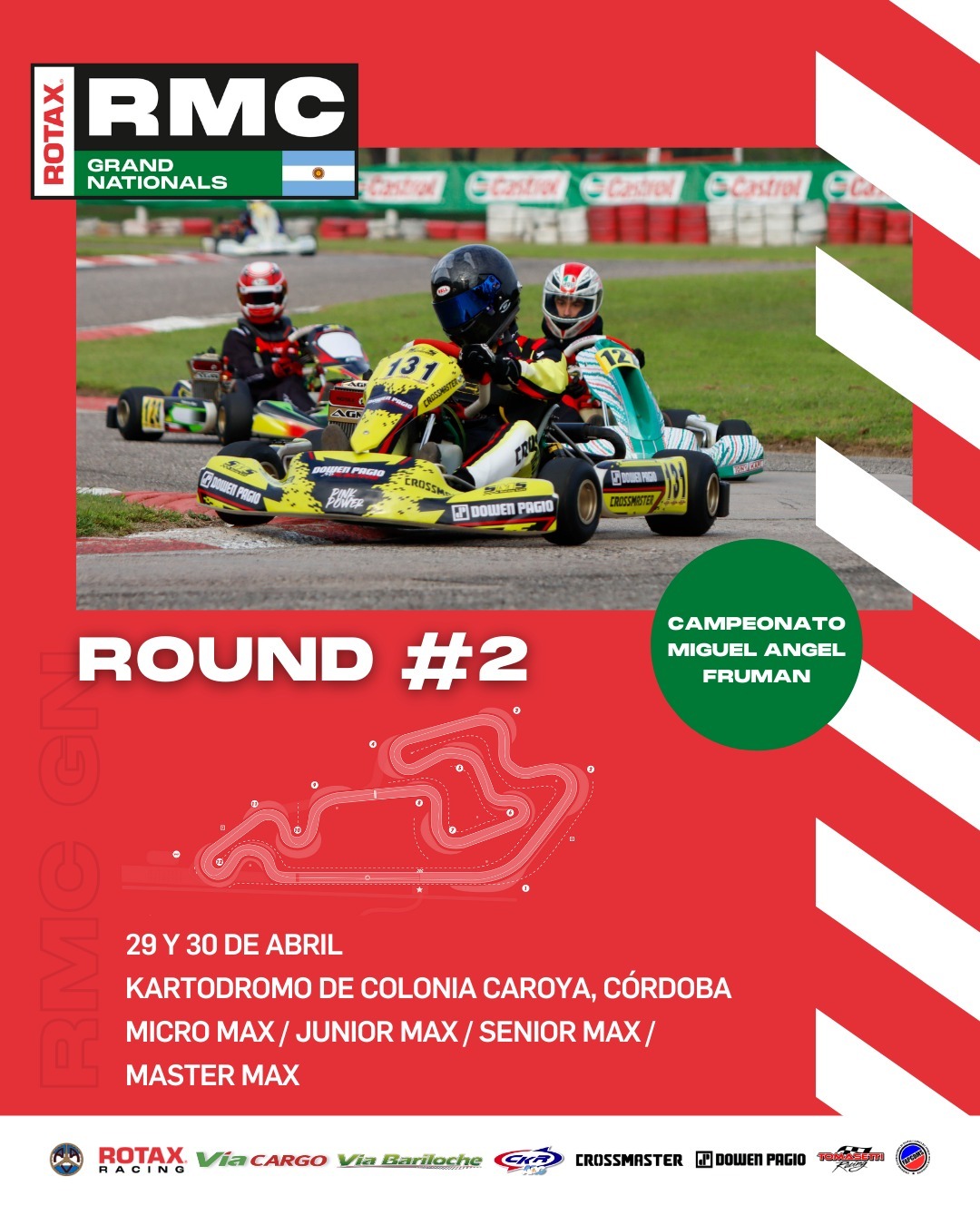 A esta carrera llegan como líderes Martín Bertolaccini (Micro Max), Salvador “Coco” Echarri (Junior Max) y Matías Fernández (Senior Max).