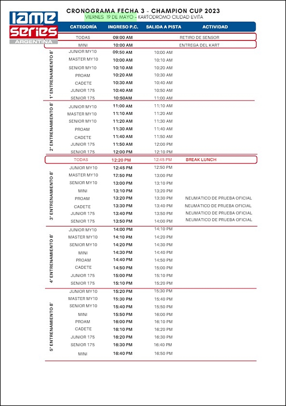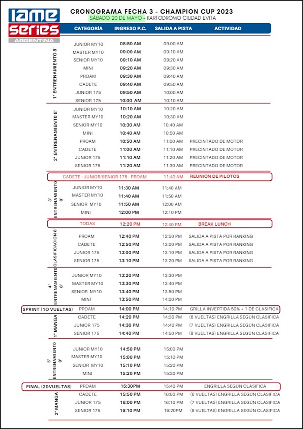 Horarios para el round 3 de IAME Series que visitará Evita