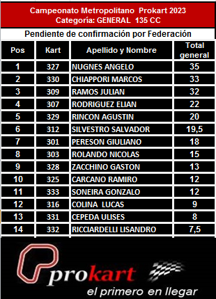 Pasó el segundo evento de Prokart Metropolitano y te mostramos como quedaron los campeonatos luego de la carrera de Zárate.