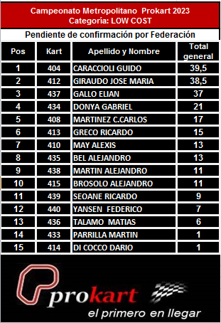 Con su triunfo en Zárate, Guido Caraccioli pasó al frente del torneo LOW COST, pero sobre 1 punto de José María Guiraudo, vencedor de la carrera apertura de este año.