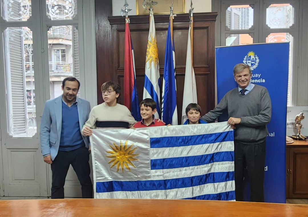 Los pilotos recibieron el pabellón de manos del Secretario Nacional de Deportes de Uruguay.