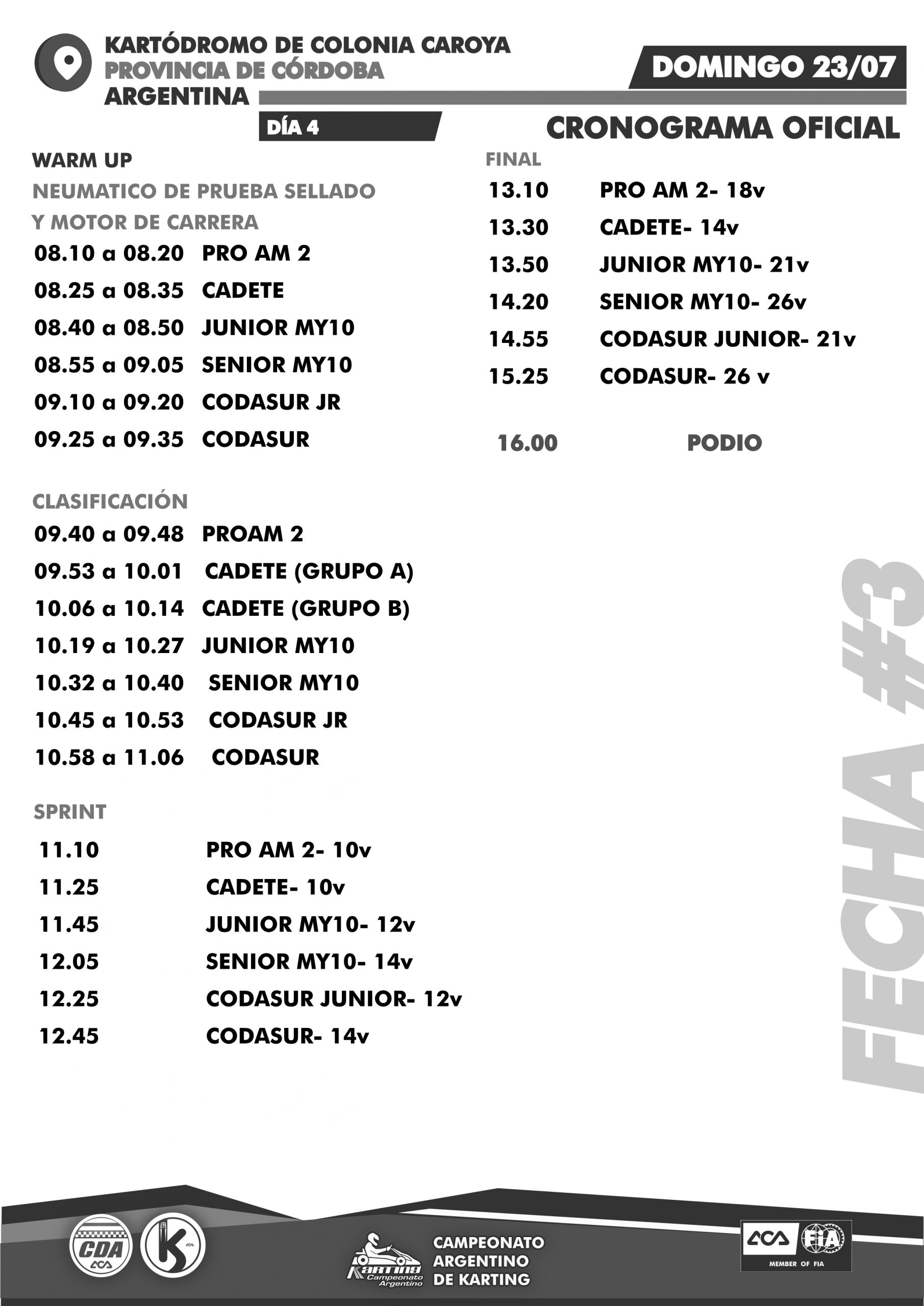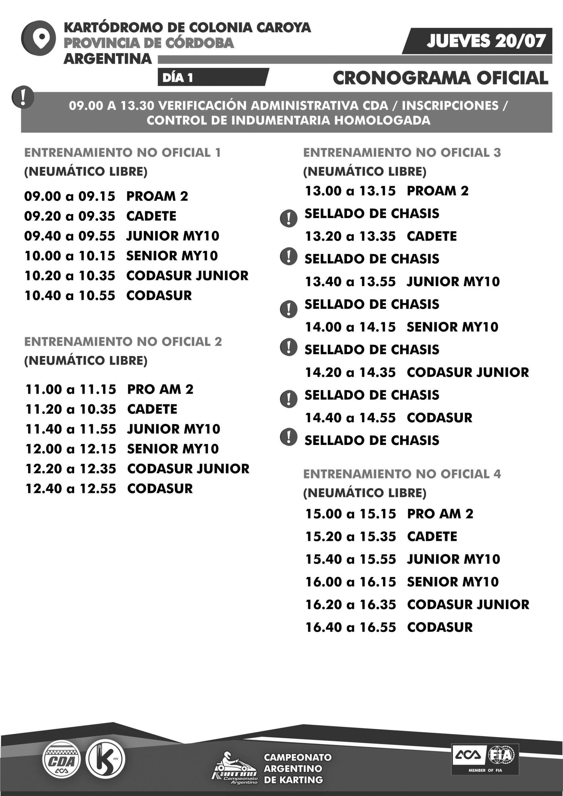 La CNK dio a conocer este lunes un nuevo cronograma de actividades para el segundo evento del Campeonato Argentino de Karting (Fechas 2 y 3) que se realizará desde este jueves 2o al domingo 23 de julio en Colonia Caroya, provincia de Córdoba.