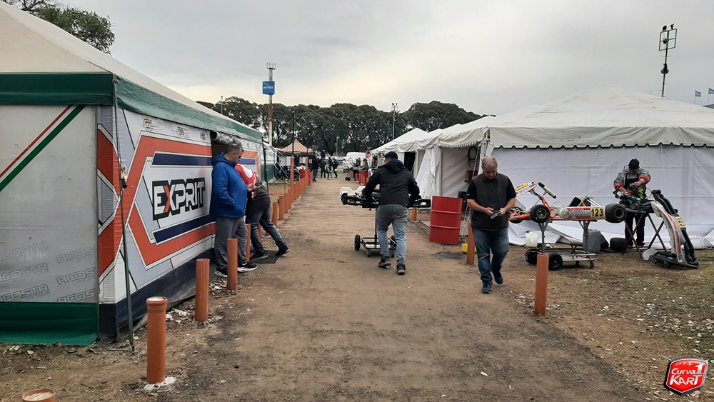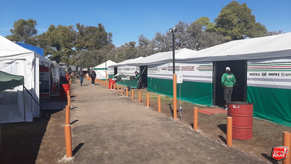Algunos siguen usando lo boxes techados del fondo, otros equipos se colocan en la calle de ingreso, enfrente de la cantina, del local de Inoriza Racing, de los baños y del galpón del kartódromo.