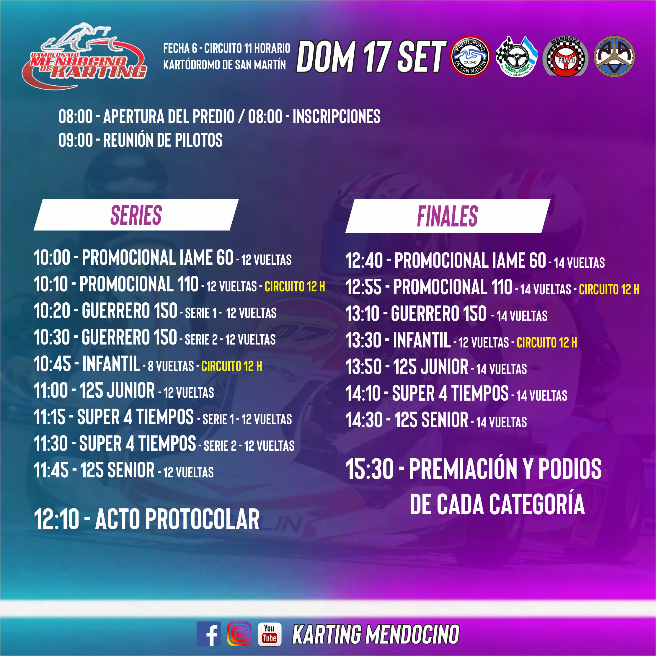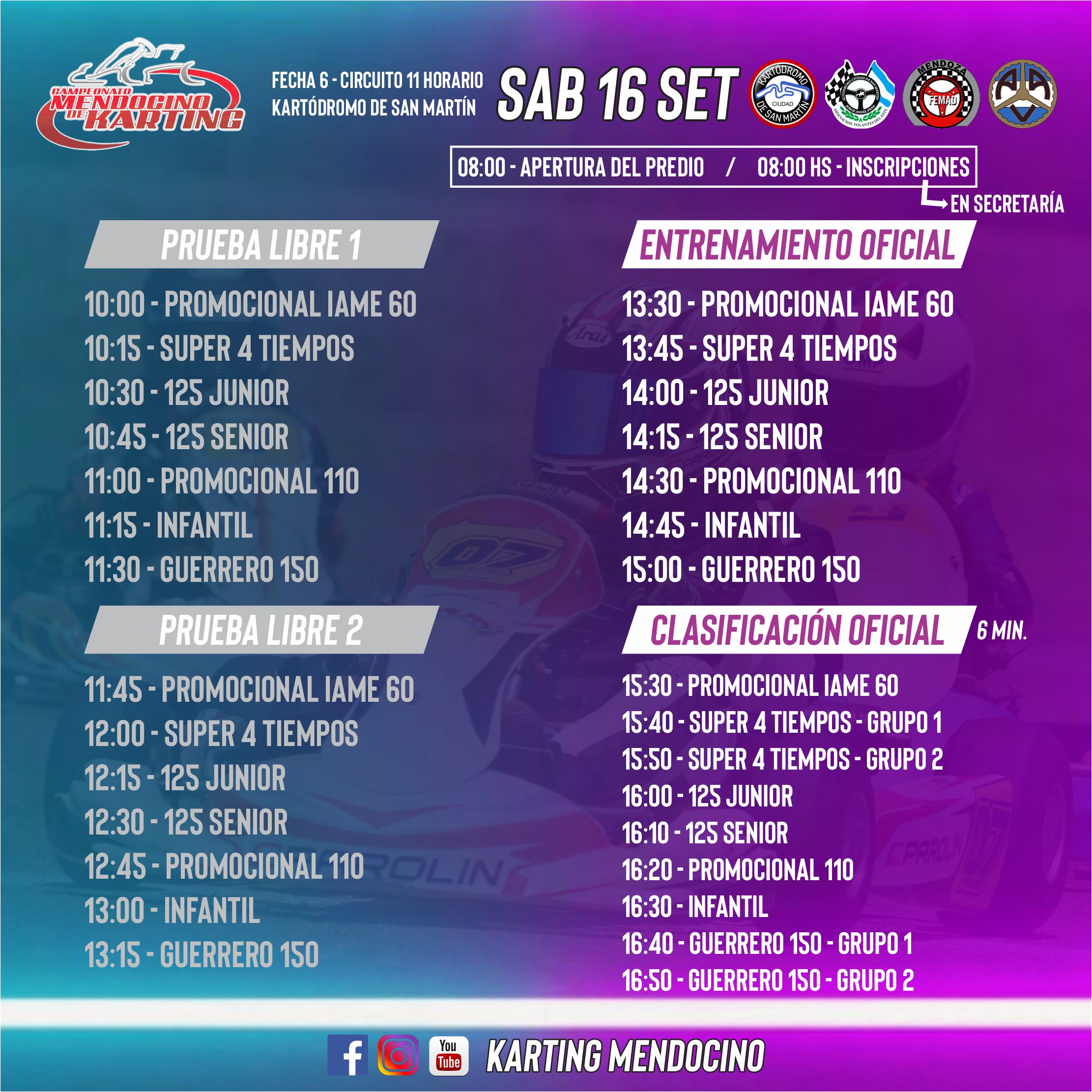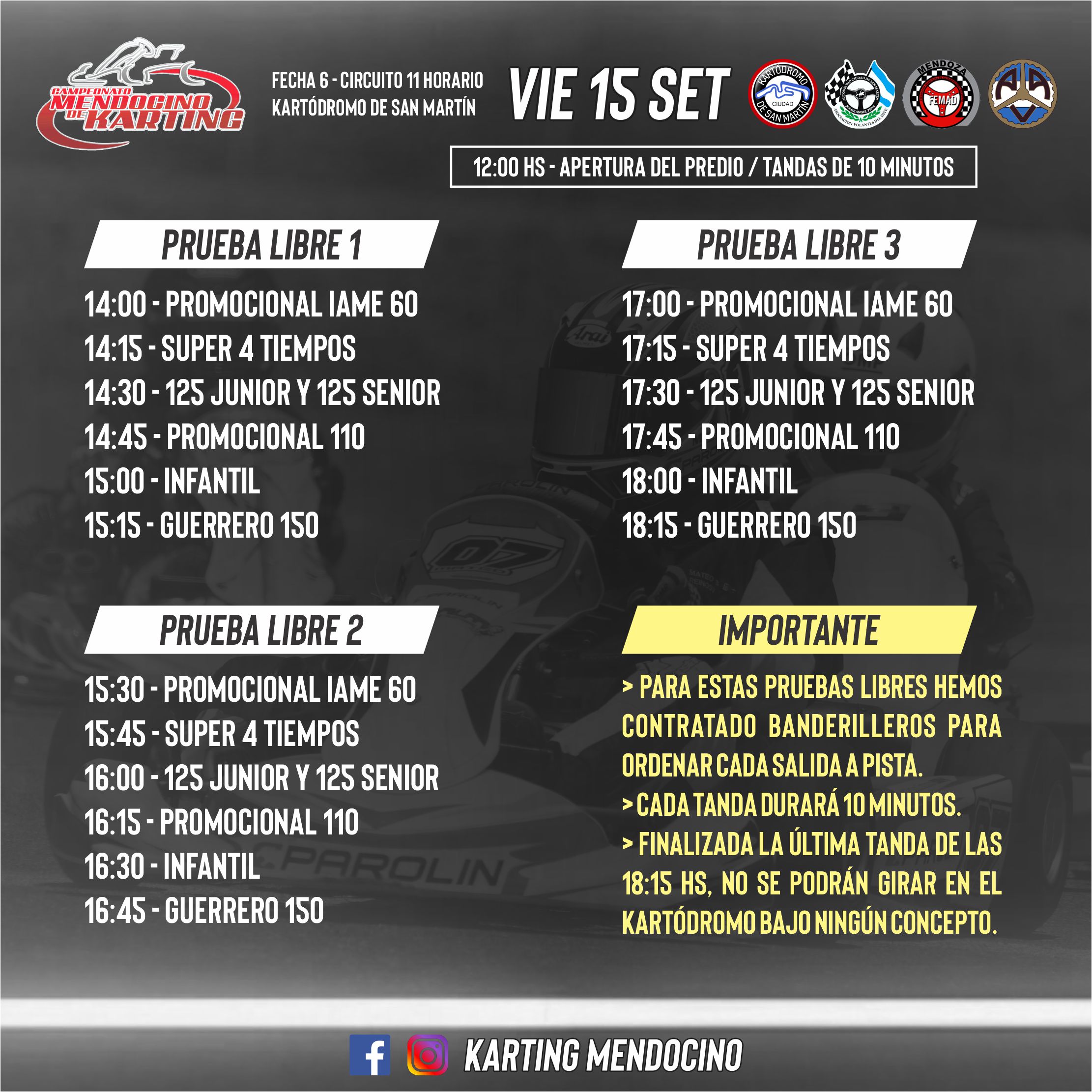 Horarios para el round 6 del Karting Mendocino en San Martín