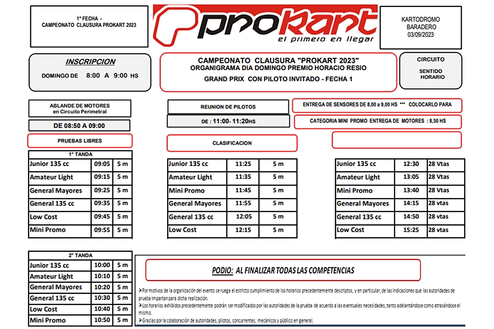 Horarios para el “Grand Prix” con invitados en Baradero