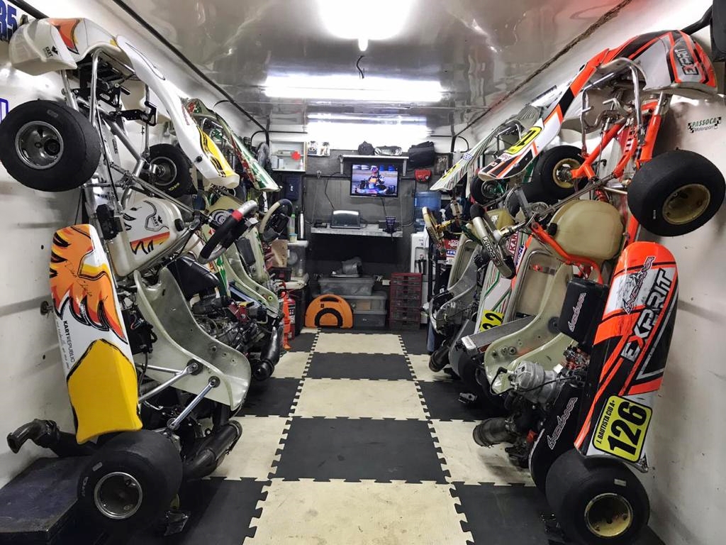 Trailer/casilla para karts, con espacio de trabajo y equipamiento de 1° nivel