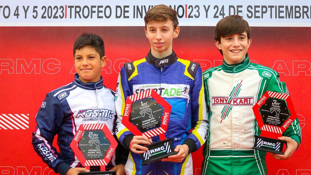 PODIO JUNIOR MAX, CON THIAGO FALIVENE (MEDIO) QUE SE CORONÓ CAMPEÓN