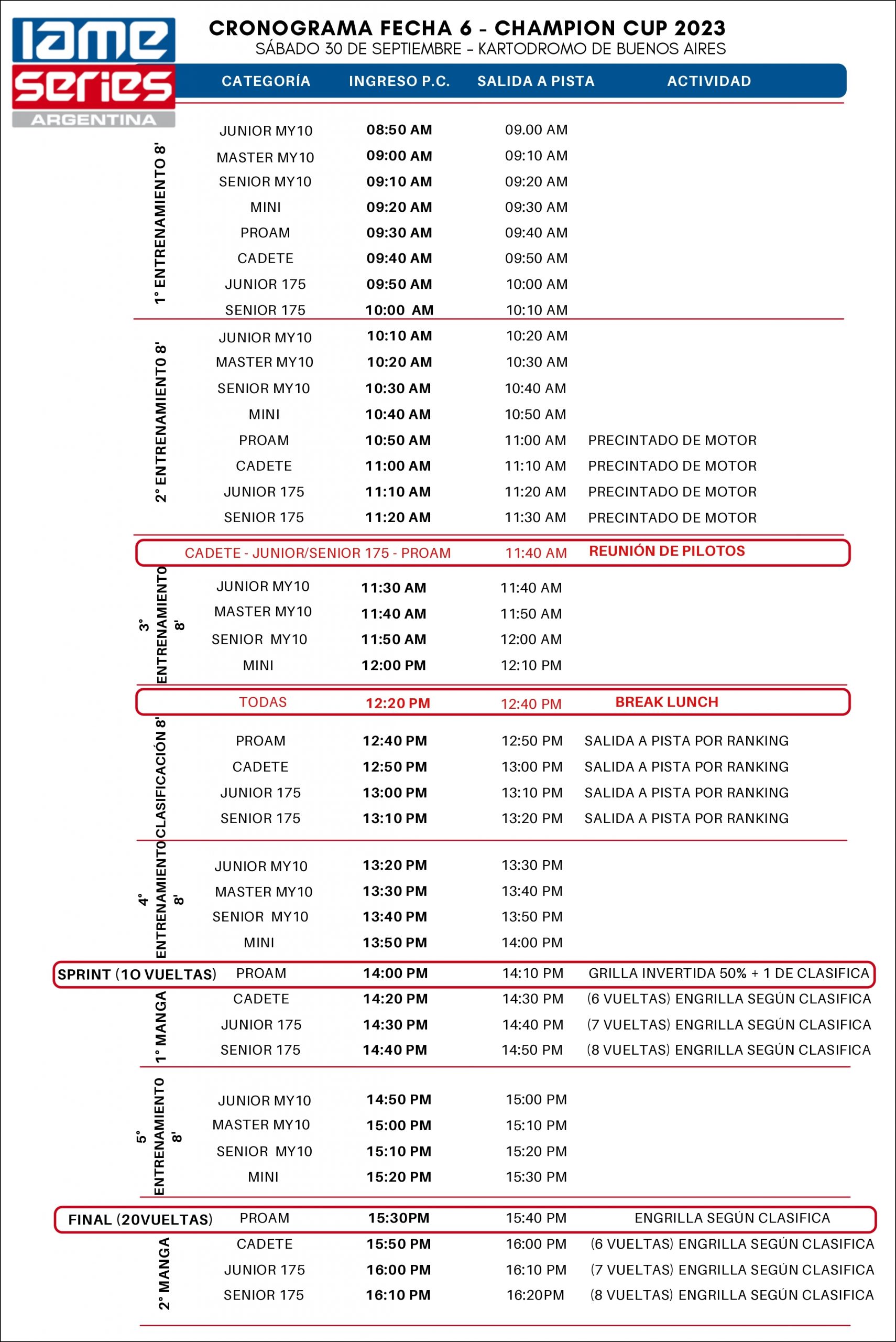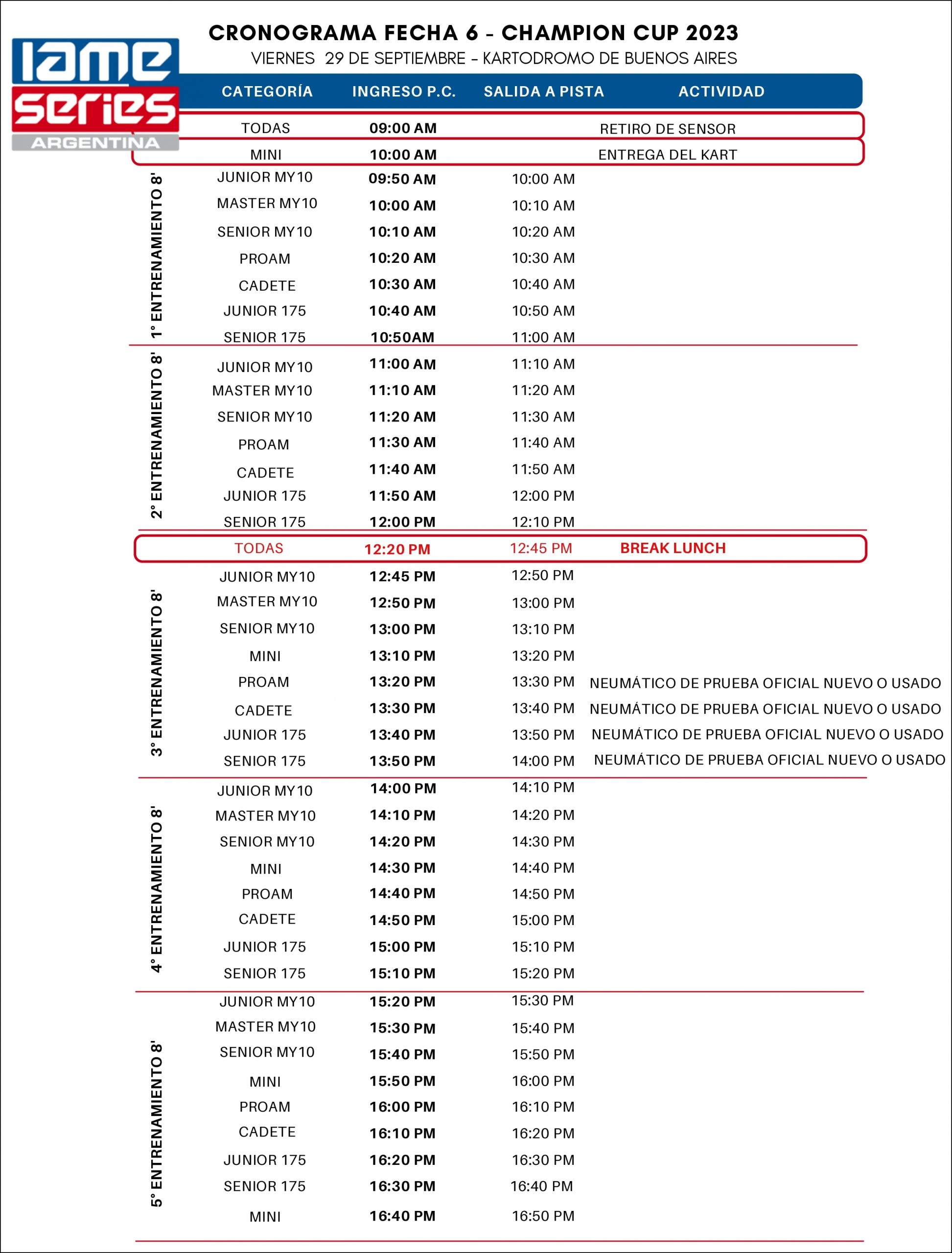 - Para más detalles, mira el Reglamento Deportivo IAME Series Argentina 2023