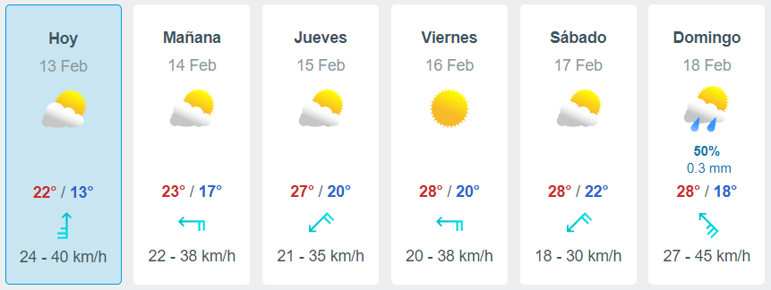 Para los días de competencia se espera buen clima con un mínima de 20° y una máxima de 28°.